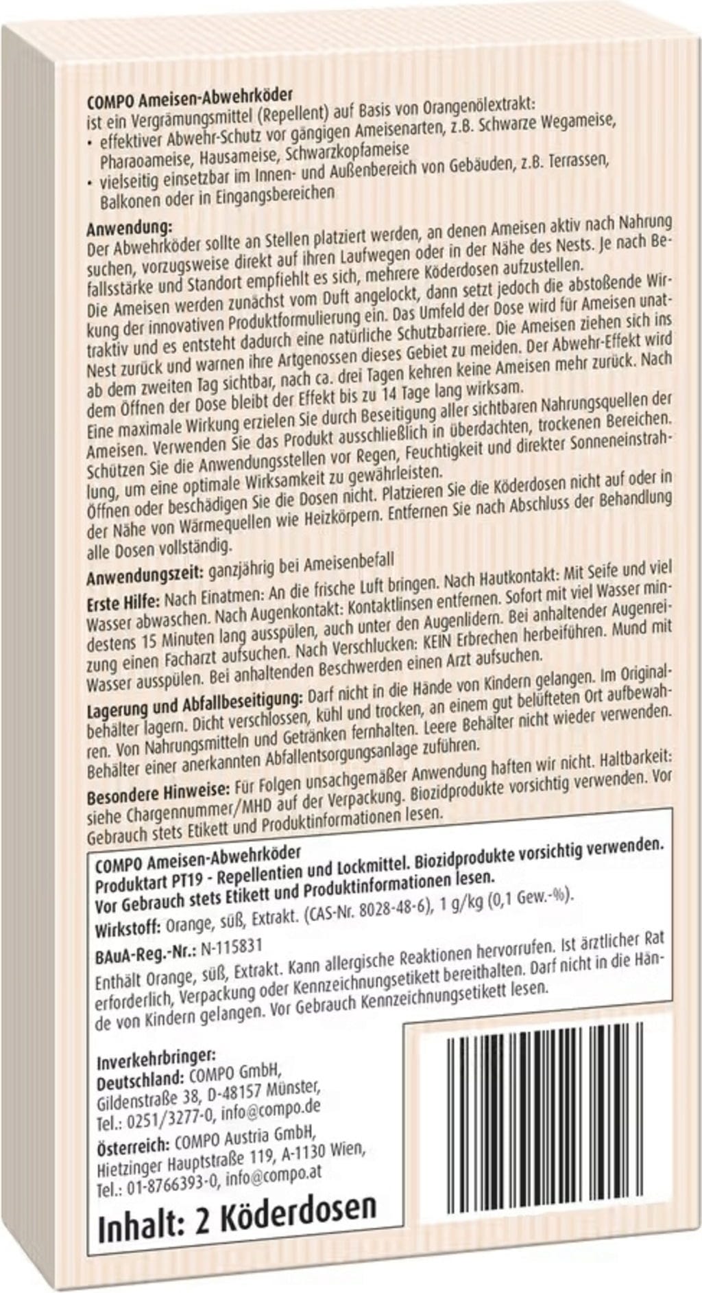 Erfahrungsberichte in Deutsch für COMPO Bio Ameisen-Abwehrköder