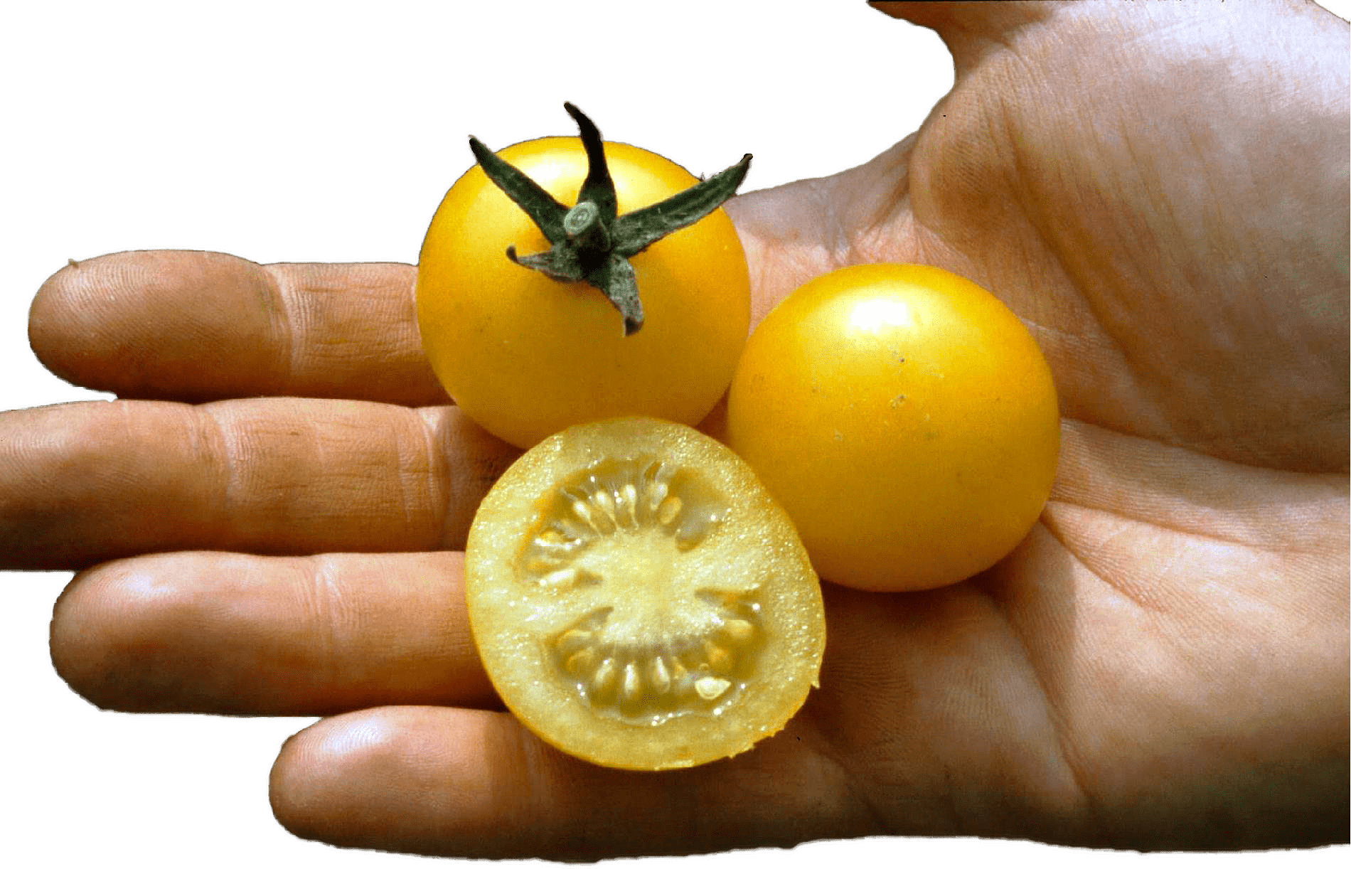 Cerise Gelb ist eine saftige, milde Cocktailtomate mit langer Ernteperiode. Sie eignet sich perfekt für frischen Verzehr, Salate oder als farbliche Abwechslung in Gemüsegerichten. Die robuste, wüchsige Pflanze wächst gesund und kräftig. Ab Juli liefert sie zuverlässig aromatische Früchte.
