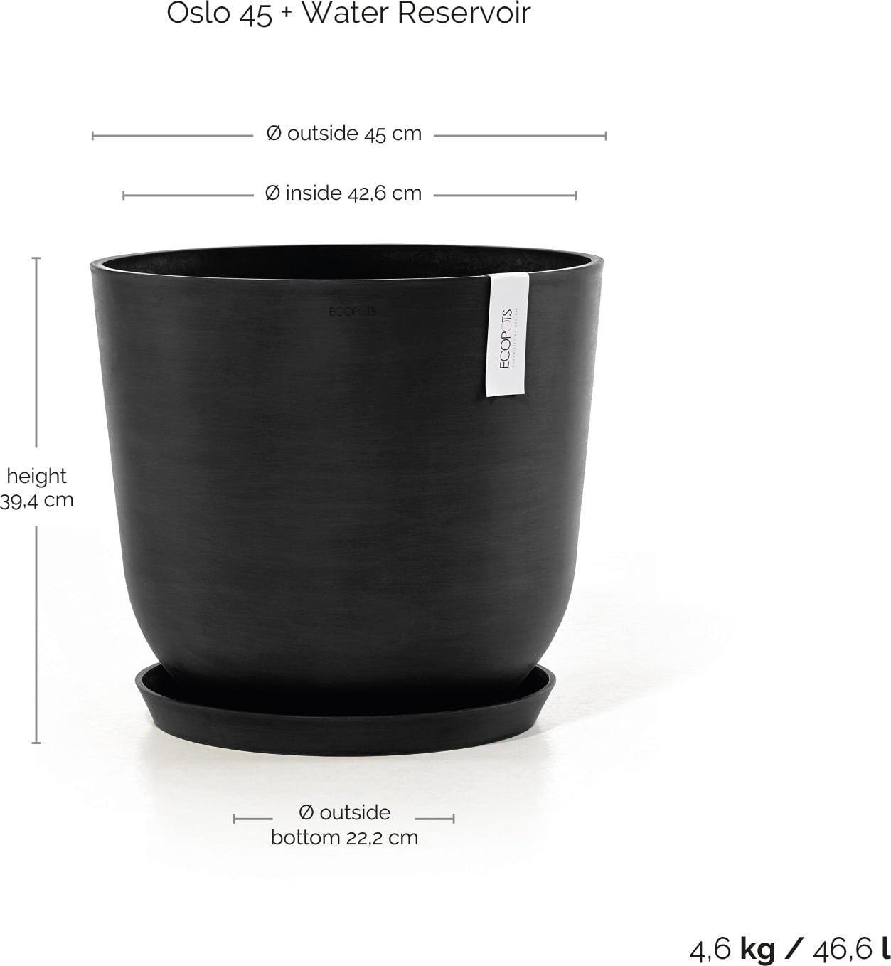 Ecopots Oslo Pflanztopf mit Wasserreservoir - dunkelgrau, Ø 45 cm, Höhe 39,2 cm