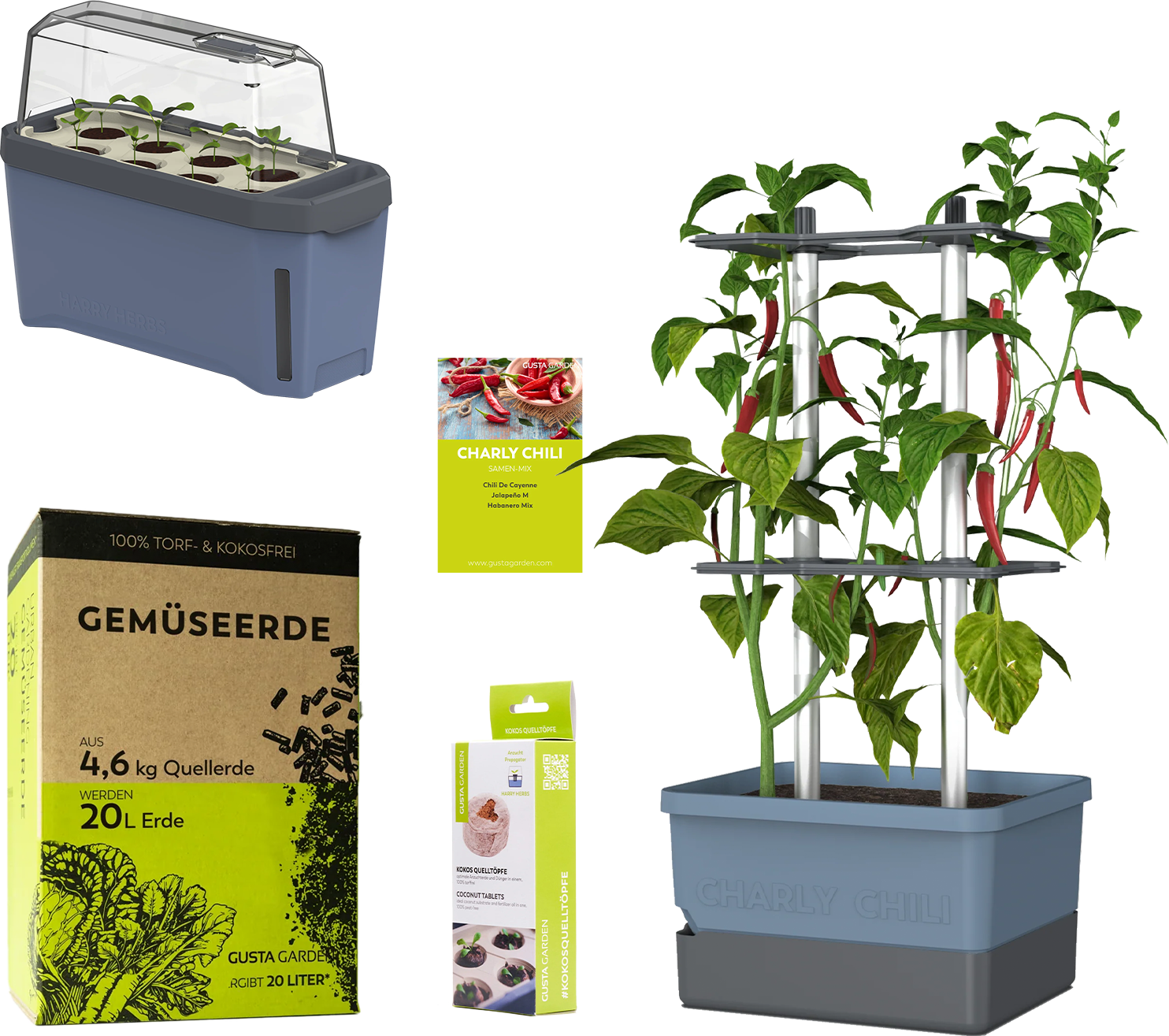 | Produktlinien: | GUSTA GARDEN CHARLY CHILI, GUSTA GARDEN HARRY HERBS |