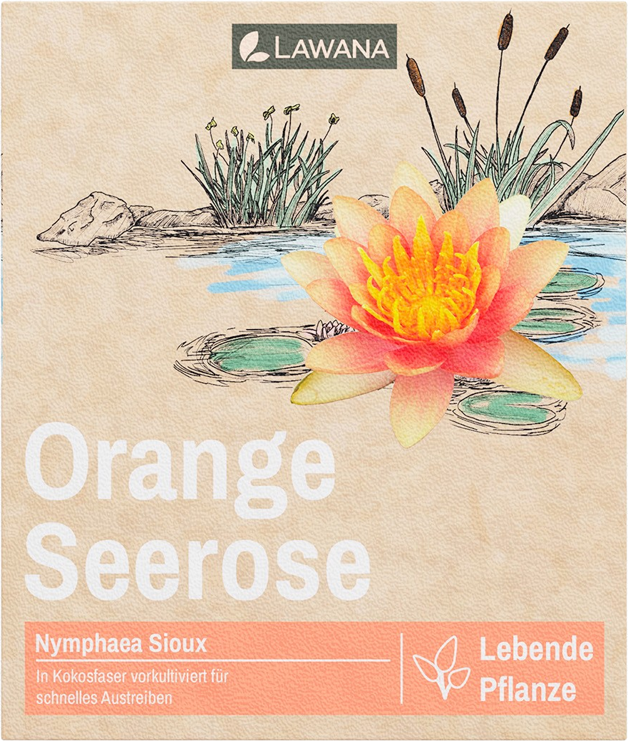 Mit der LAWANA Nymphaea Natura Coco „Sioux“ holst du dir eine prachtvolle, orange blühende Seerose in deinen Teich! Dank der innovativen Anzucht in biologisch abbaubaren Kokosfasern ist die Pflanze bereits kräftig vorgewachsen und kann ohne zusätzlichen Nährboden direkt in dein Gewässer eingesetzt werden.