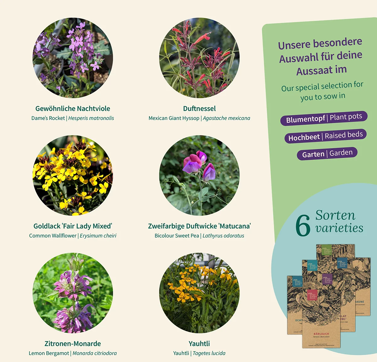 - 6 verschiedene Saatgutsorten