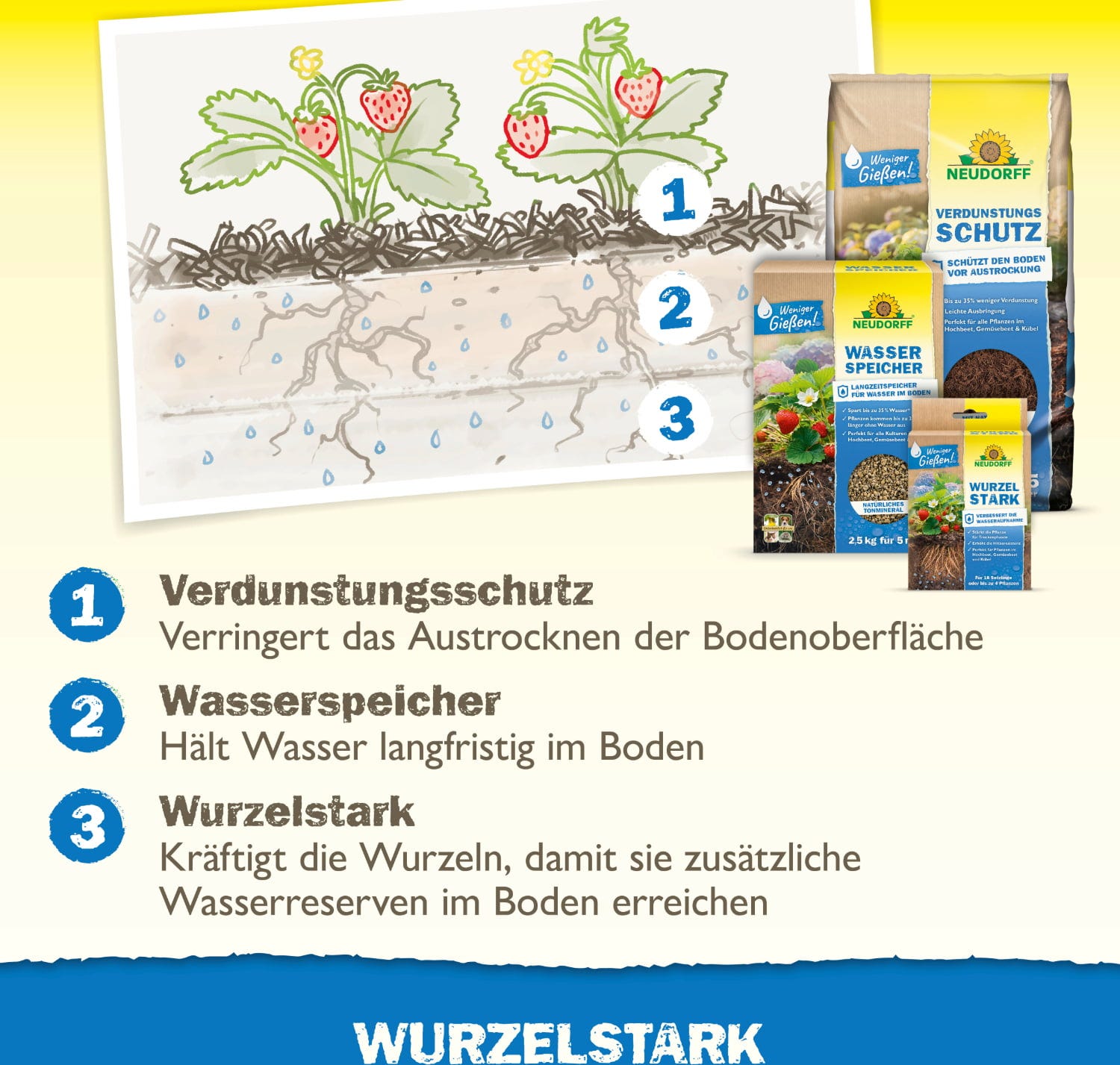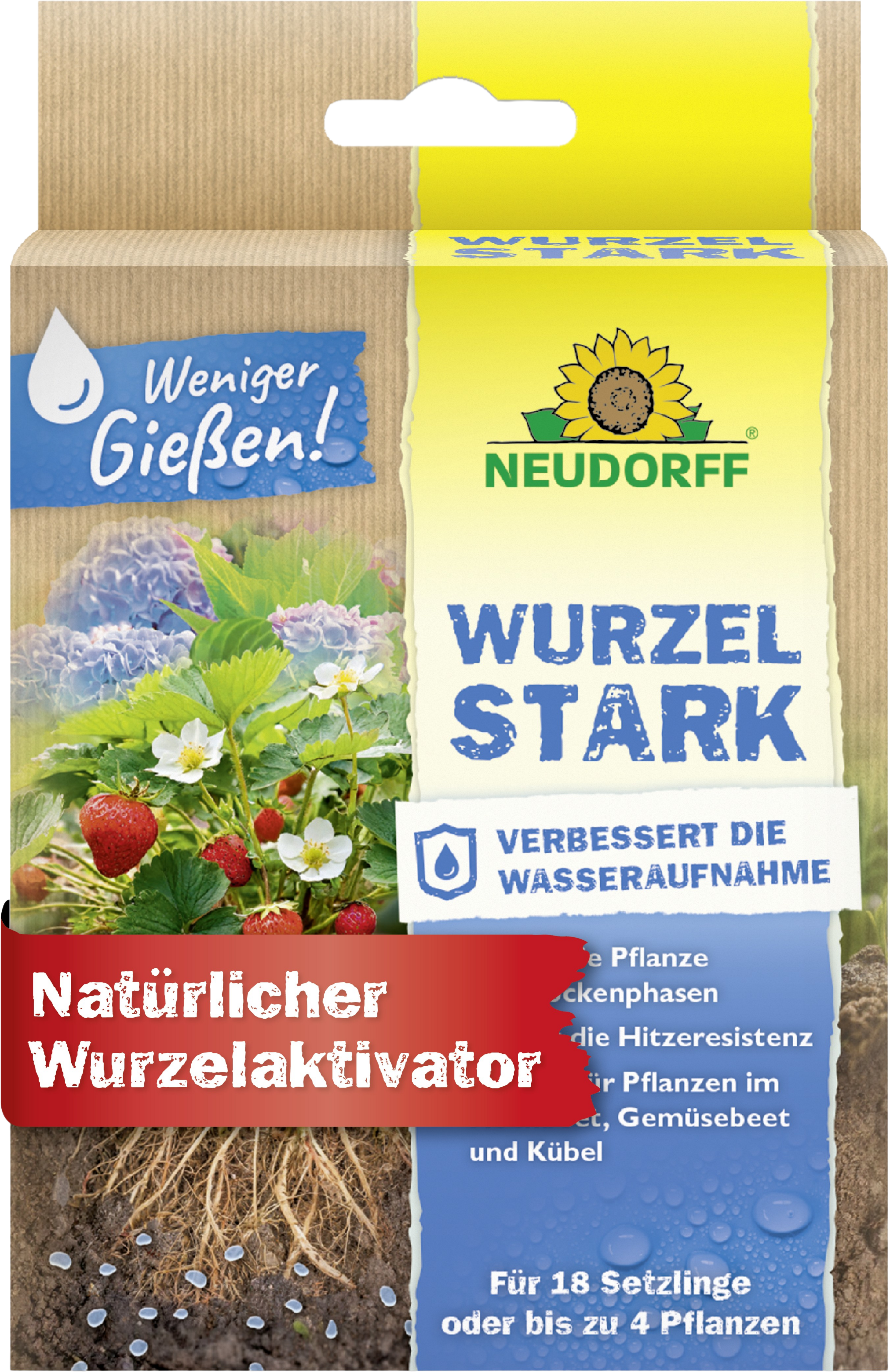 Wurzelstark zeichnet sich durch den Einsatz von Mykorrhiza-Pilzen aus, die dabei helfen können, das Wurzelgeflecht zu vergrößern und damit die Wasser- sowie Nährstoffaufnahme begünstigen. Das unterstützt die Pflanzen während heißer Sommer oder in Trockenperioden, da sie durch ein größeres Wurzelgeflecht zusätzliche Wasserreserven im Boden erschließen können, die sonst nicht erreicht werden. Dies erhöht nicht nur die Hitzebeständigkeit, sondern sorgt auch für reichere Blüte sowie Ernte im Sommer. Außerdem muss dadurch auch weniger oft gegossen werden.