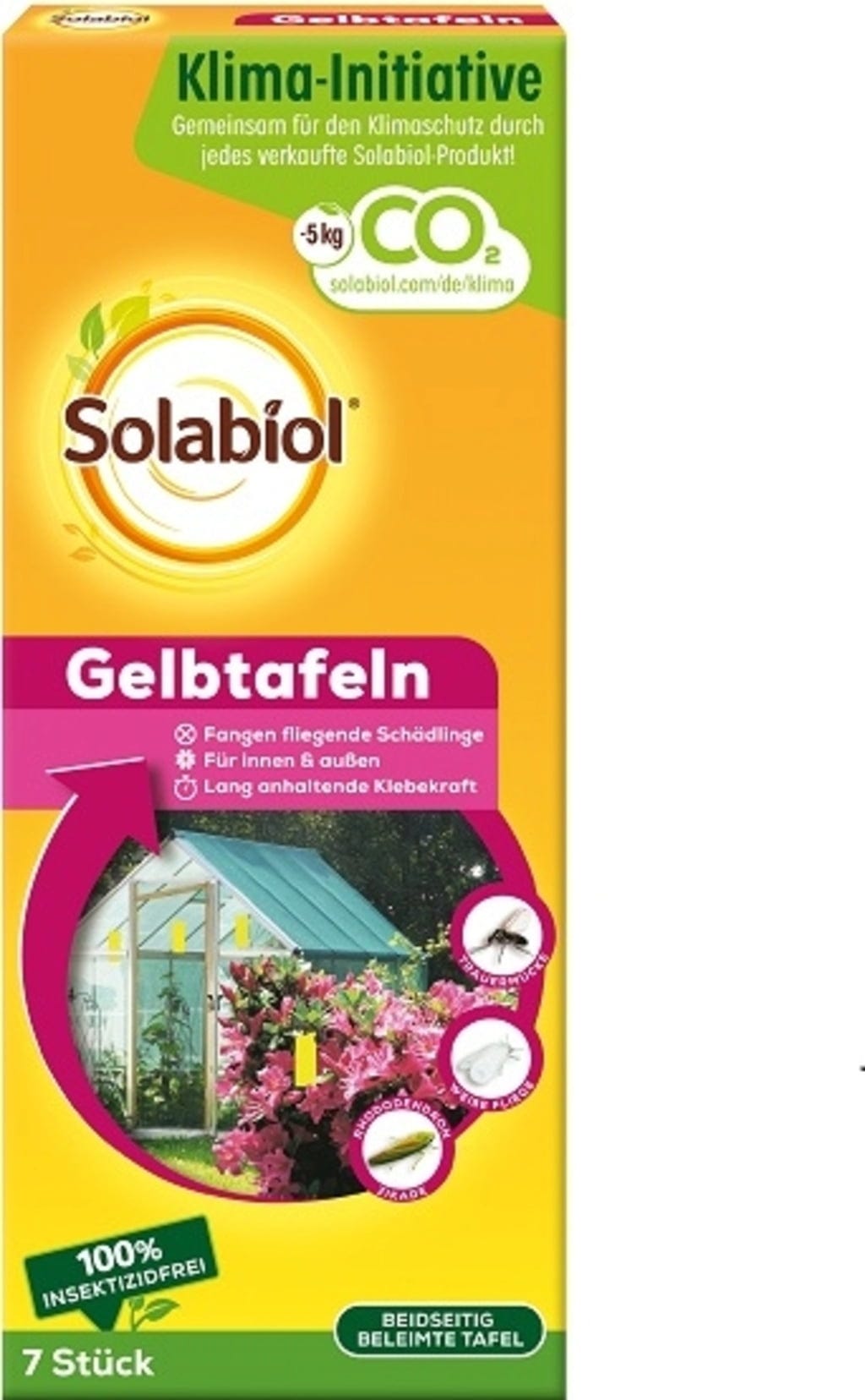 Die Solabiol Gelbtafeln helfen zuverlässig gegen Weiße Fliegen, Trauermücken, Blattläuse, Minierfliegen und Zikaden. Einfach frühzeitig zwischen den Pflanzen aufhängen, möglichst auf Höhe der Pflanzengipfel, und bei Bedarf anpassen. Durch den speziellen Leim bleiben die Schädlinge kleben, während die Tafeln selbst geruchlos und ungiftig für nützliche Insekten sind.