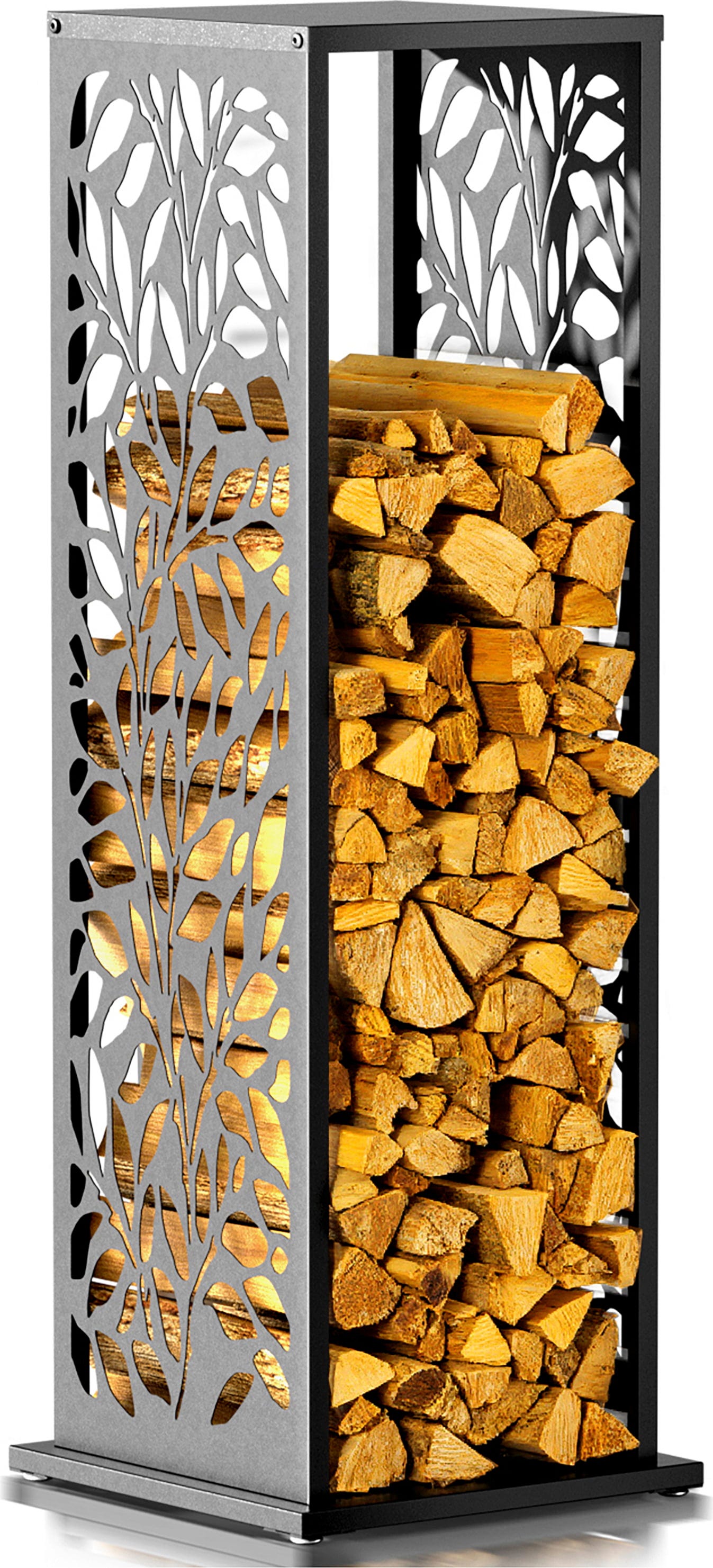 Massive Stahlkonstruktion mit modernem Design - Brennholz stilvoll aufbewahren