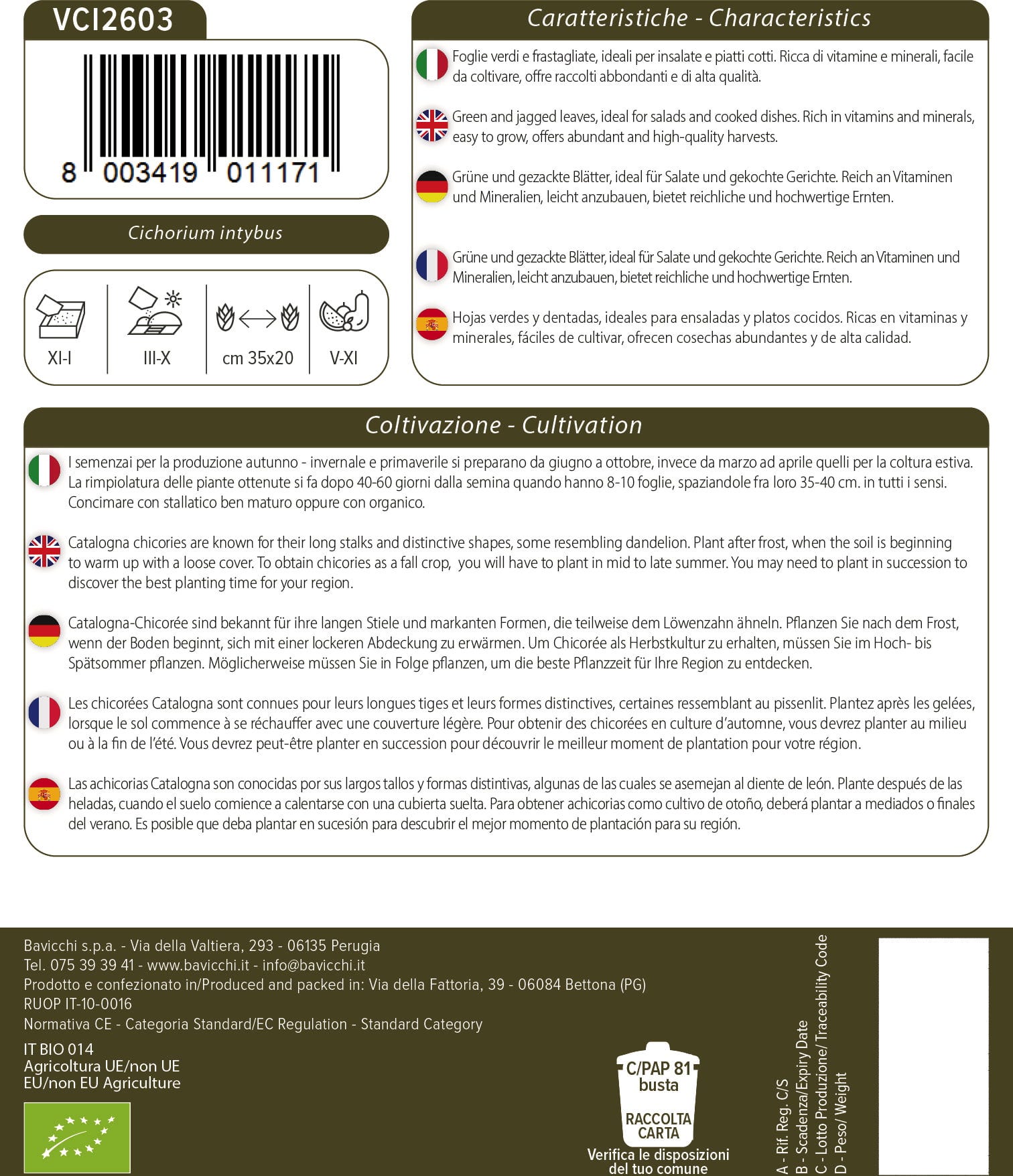 Bavicchi Organic Italian Catalogne Chicory, 6 grams