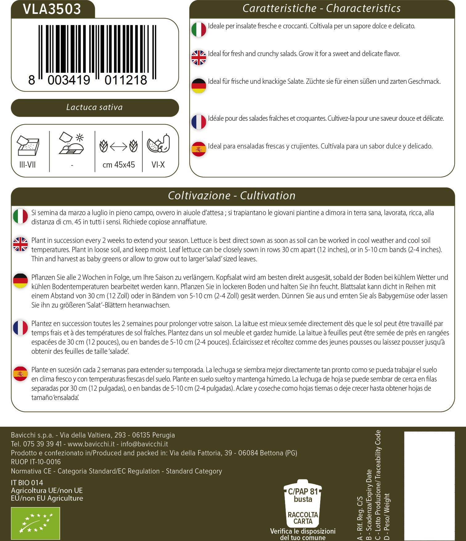 Bavicchi Organic Romaine Lettuce, 4,50 grams