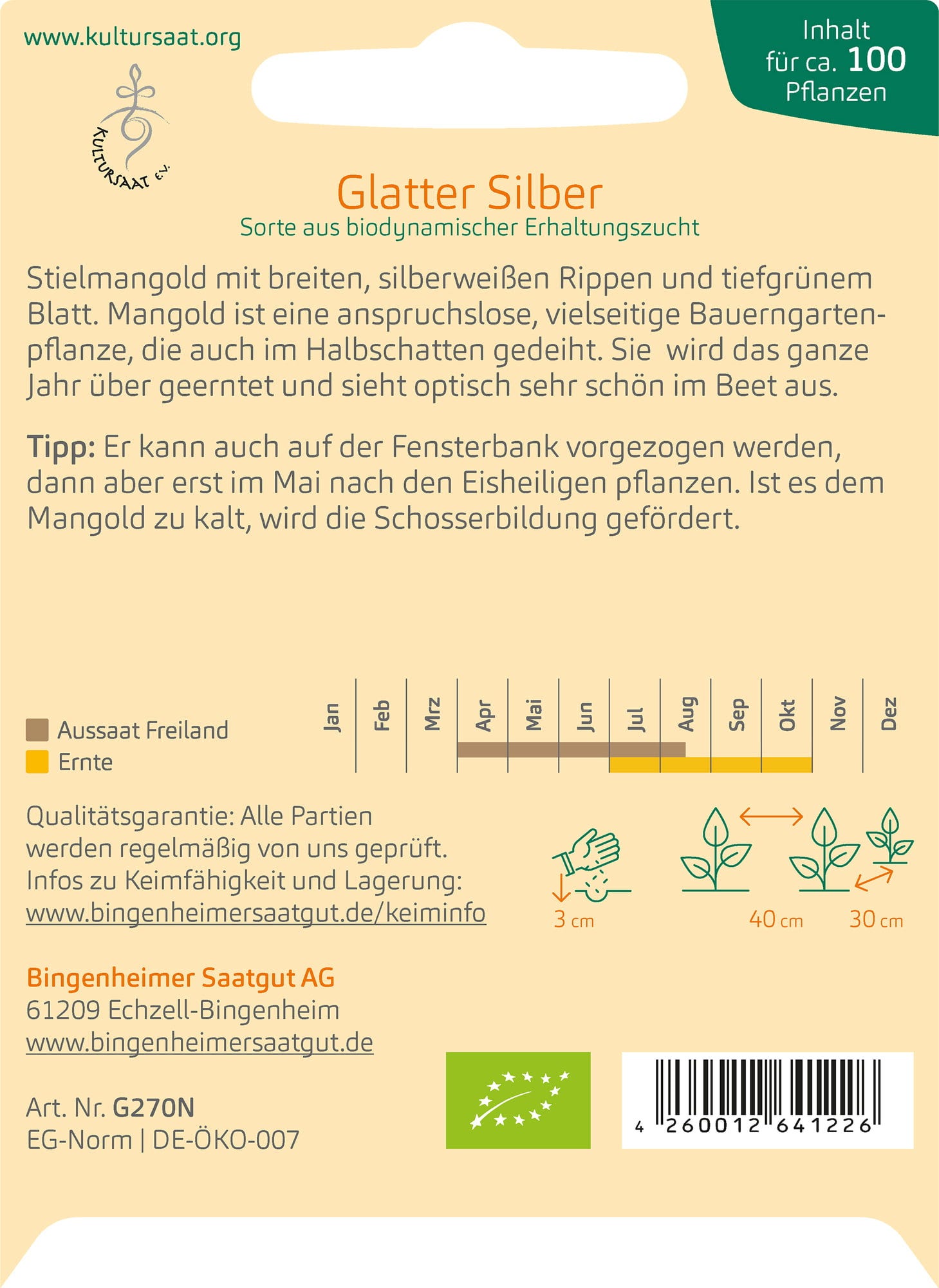Bingenheimer Saatgut Chard "Smooth Silver 3"