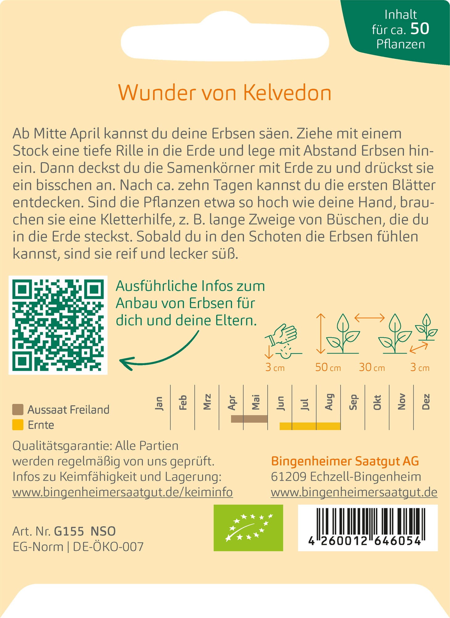 Bingenheimer Saatgut Pea "Wunder von Kelvedon" - Children's Edition