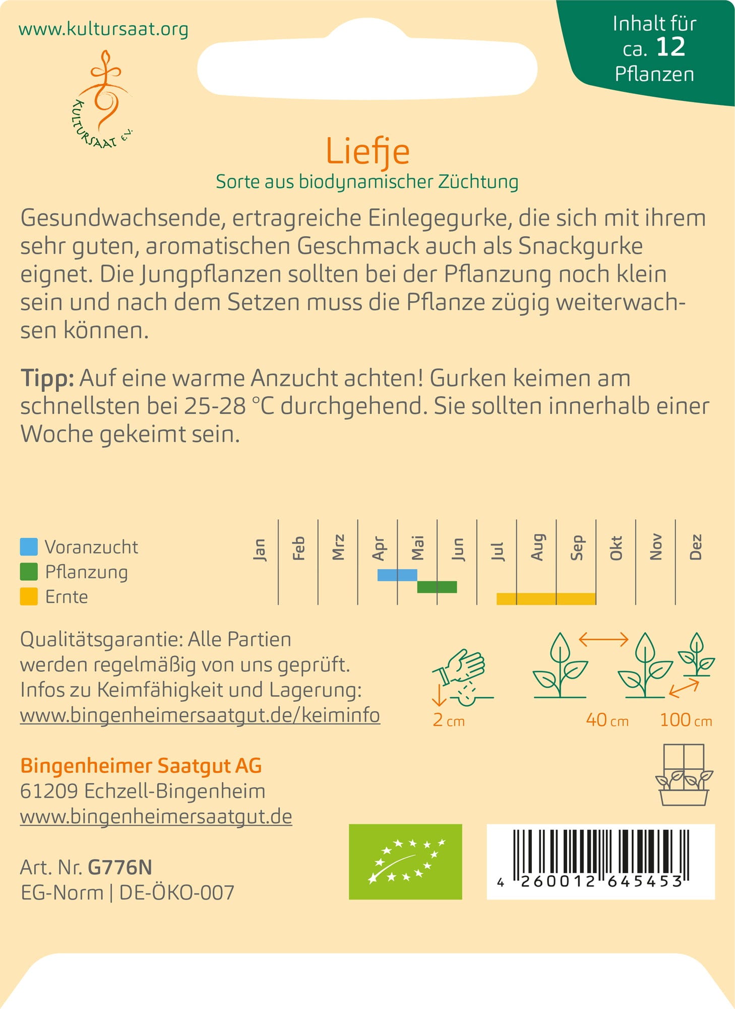 Bingenheimer Saatgut Pickling Cucumber "Liefje"
