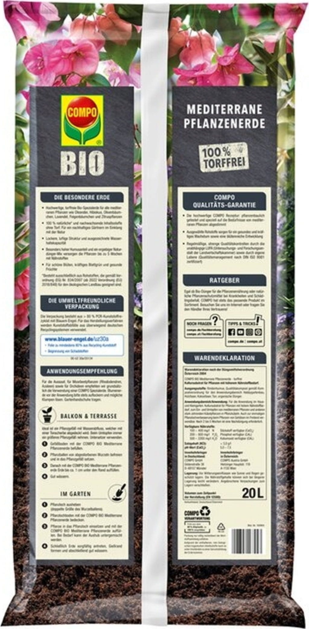 Compo BIO Organic Peat-Free Mediterranean Plant Compost, 20 l