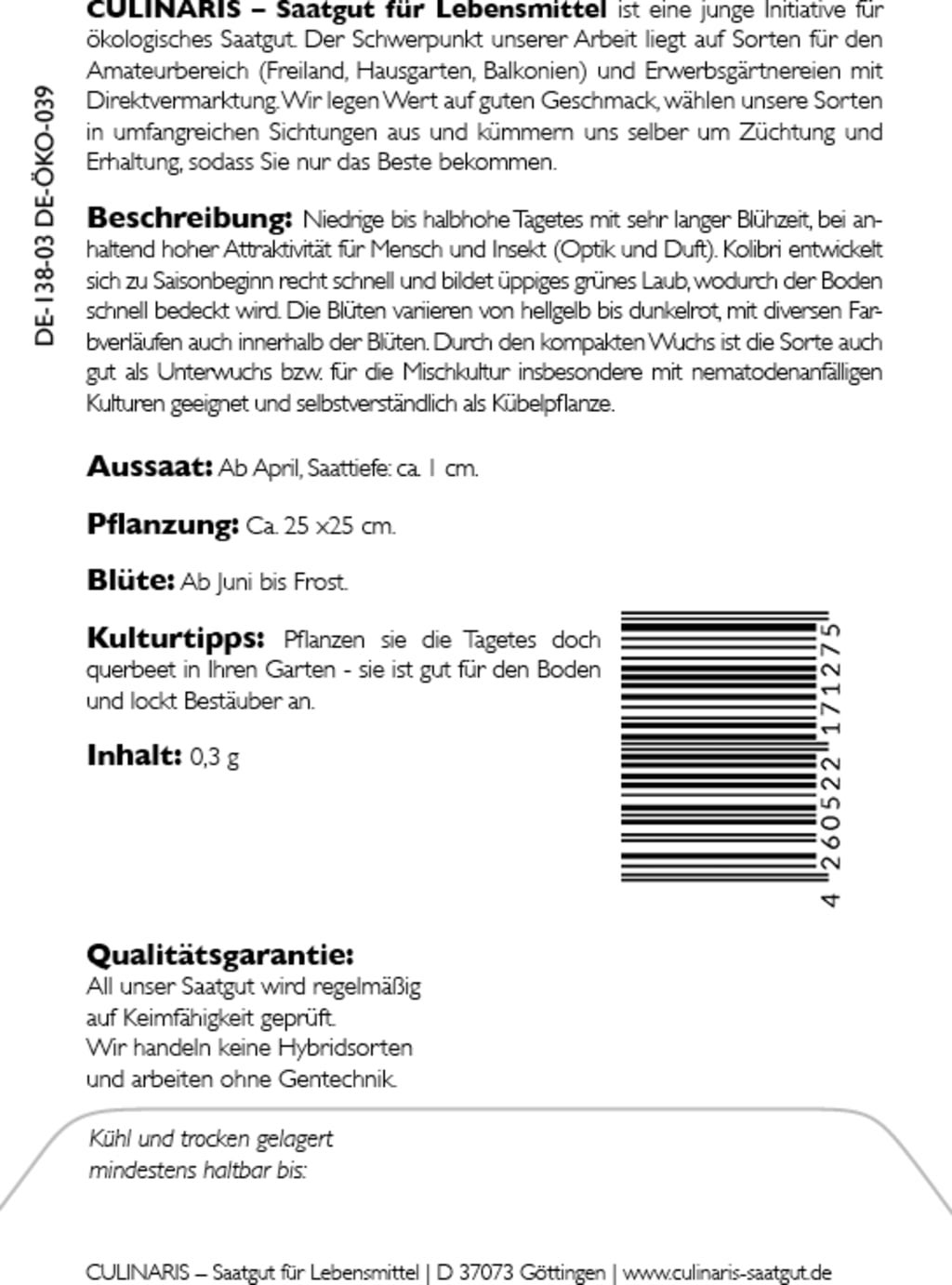 | Manufacturer: | Culinaris - Saatgut für Lebensmittel, Thiegasse 5, 37124, Rosdorf, Germany, info@culinaris-saatgut.de, culinaris-saatgut.de |