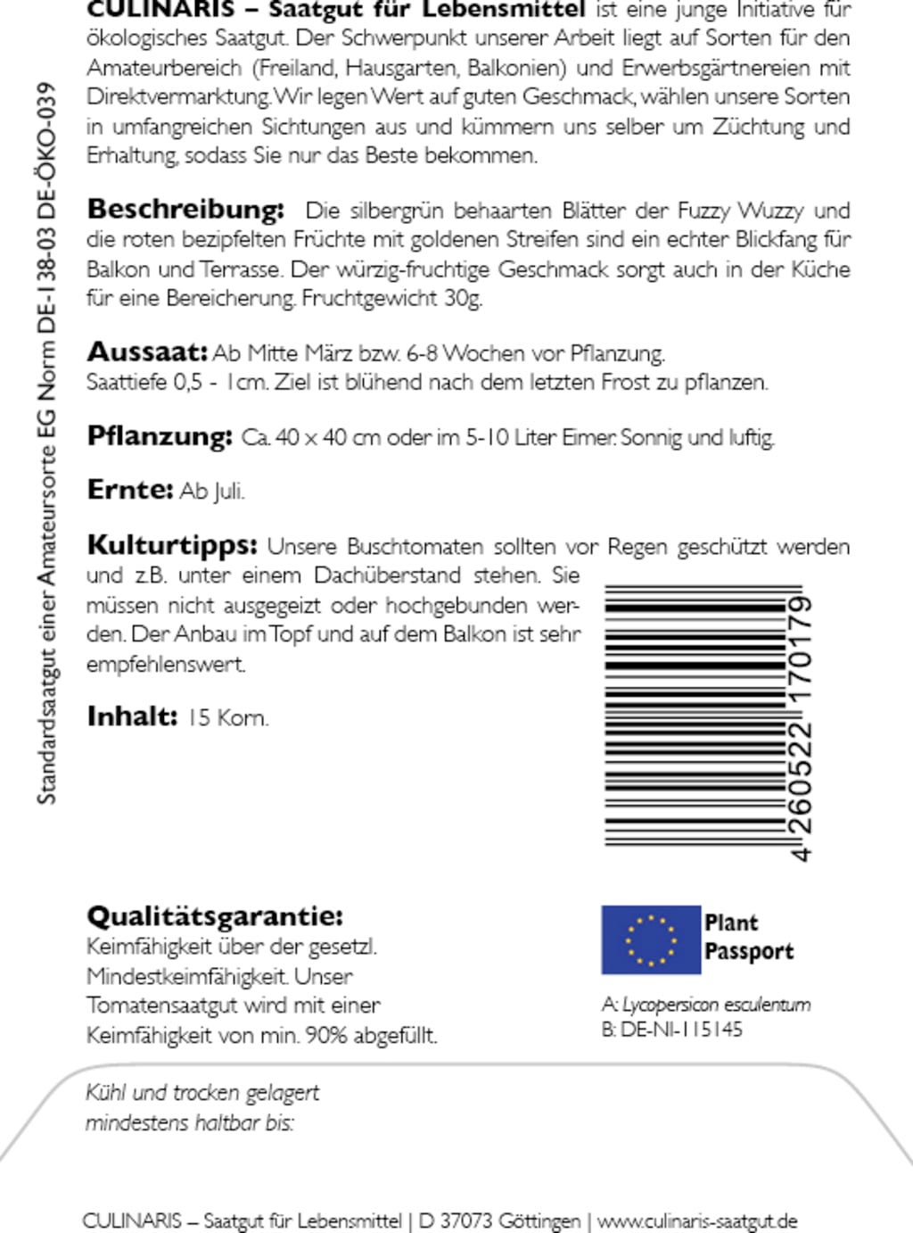 | Manufacturer: | Culinaris - Saatgut für Lebensmittel, Thiegasse 5, 37124, Rosdorf, Germany, info@culinaris-saatgut.de, culinaris-saatgut.de |
