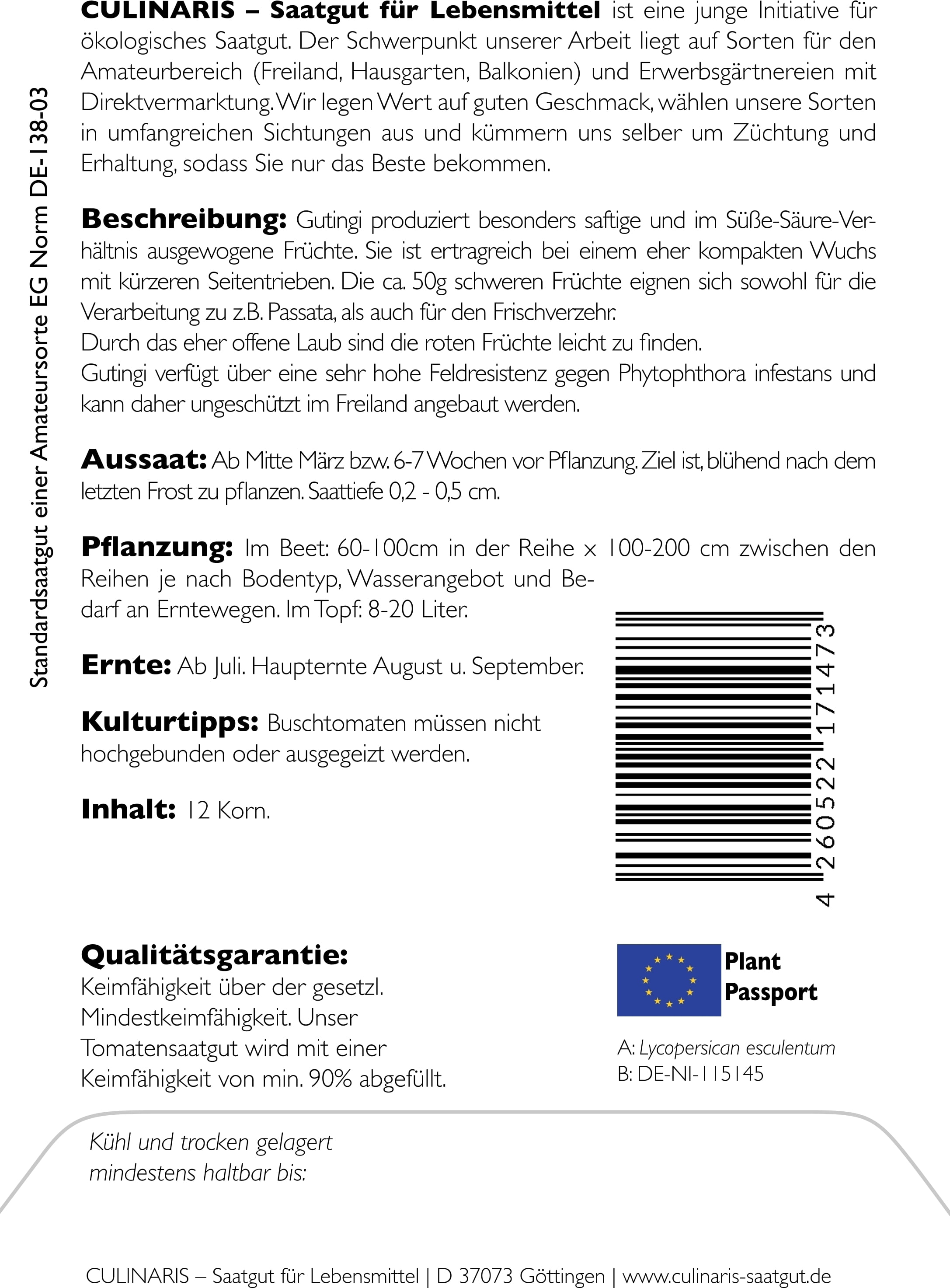 | Manufacturer: | Culinaris - Saatgut für Lebensmittel, Thiegasse 5, 37124, Rosdorf, Germany, info@culinaris-saatgut.de, culinaris-saatgut.de |