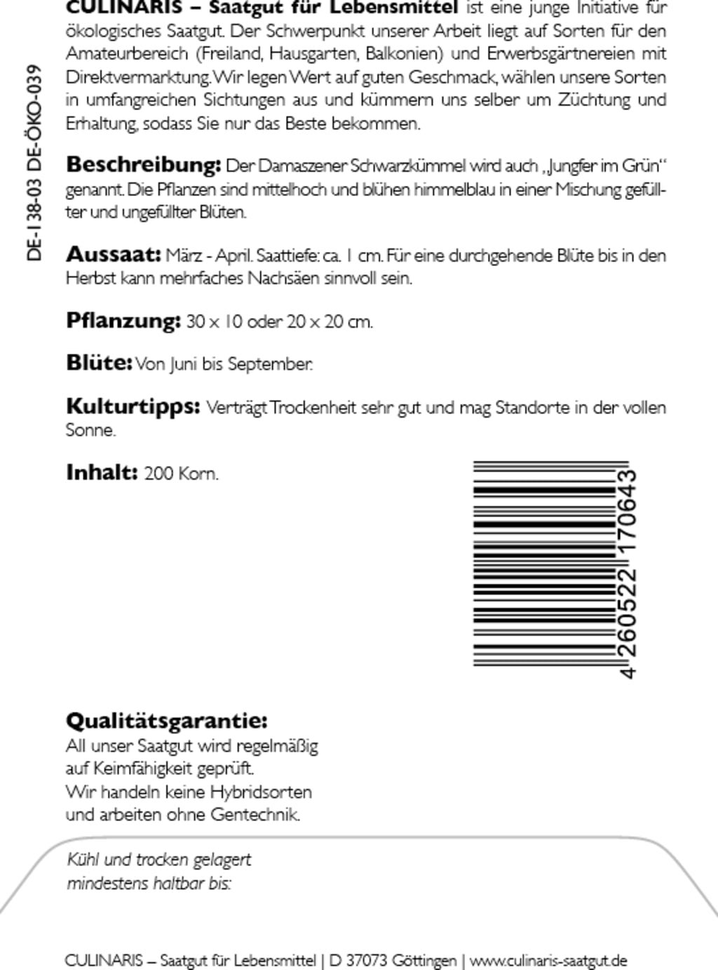 | Manufacturer: | Culinaris - Saatgut für Lebensmittel, Thiegasse 5, 37124, Rosdorf, Germany, info@culinaris-saatgut.de, culinaris-saatgut.de |