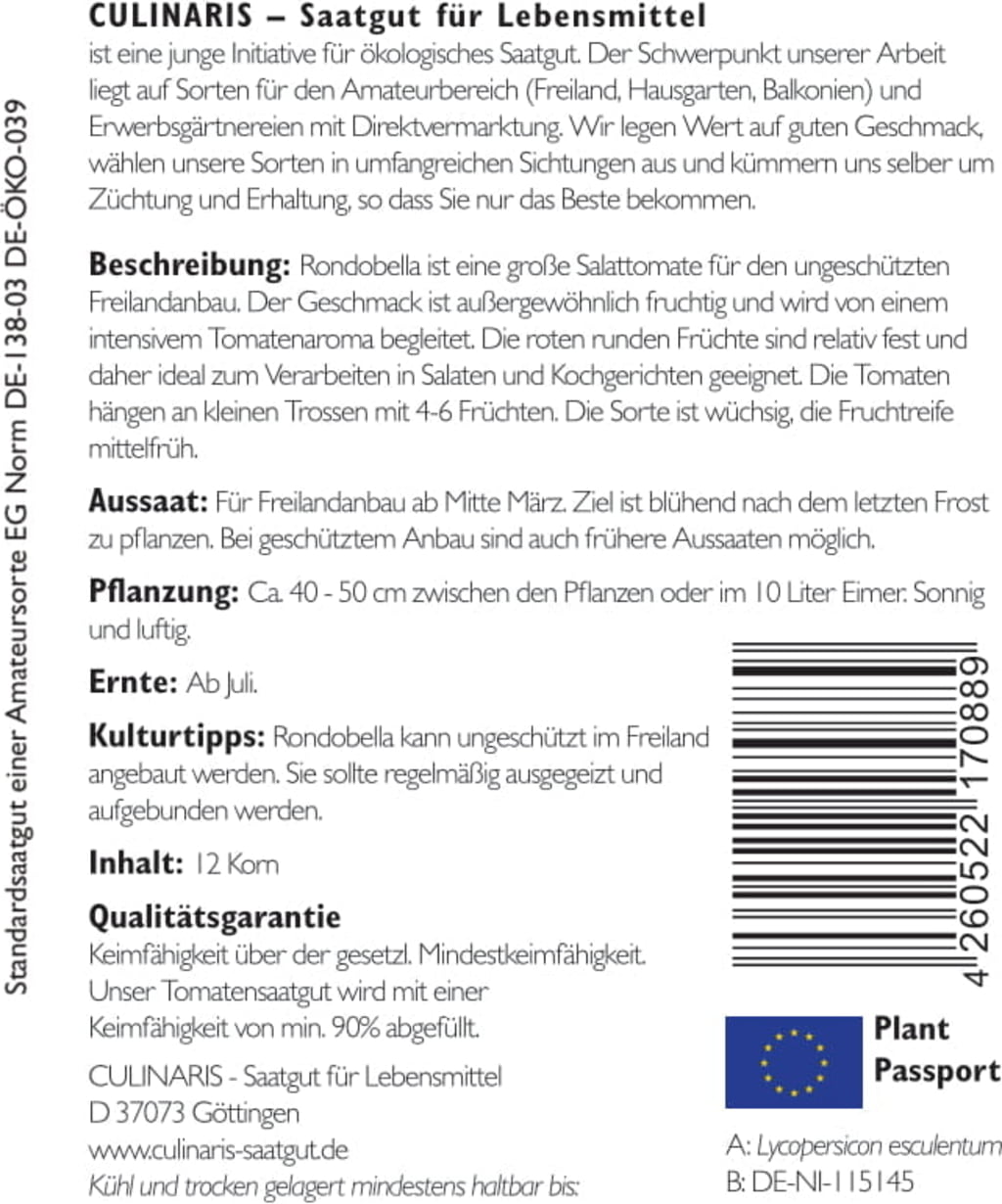 | Manufacturer: | Culinaris - Saatgut für Lebensmittel, Thiegasse 5, 37124, Rosdorf, Germany, info@culinaris-saatgut.de, culinaris-saatgut.de |