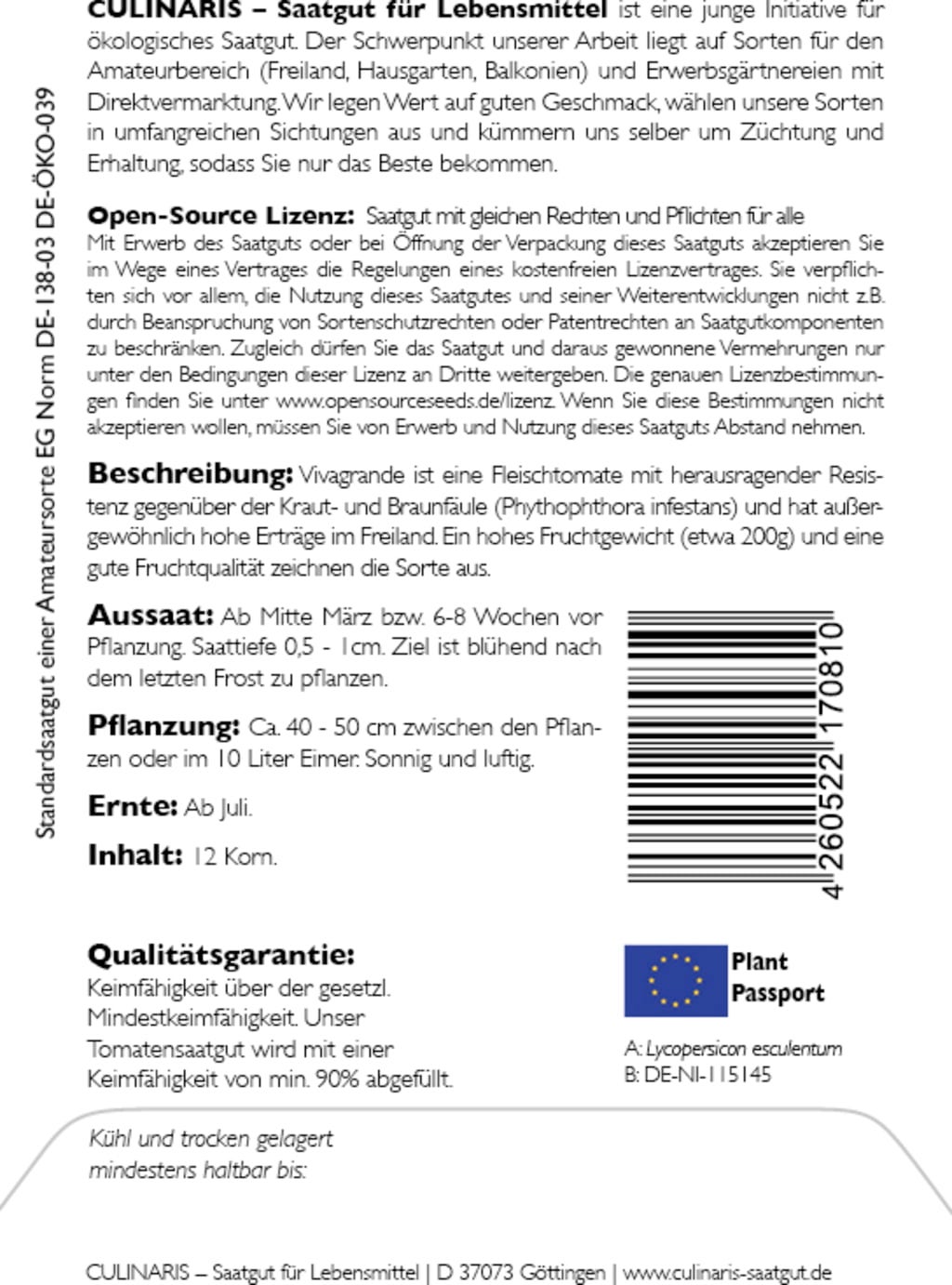 | Manufacturer: | Culinaris - Saatgut für Lebensmittel, Thiegasse 5, 37124, Rosdorf, Germany, info@culinaris-saatgut.de, culinaris-saatgut.de |