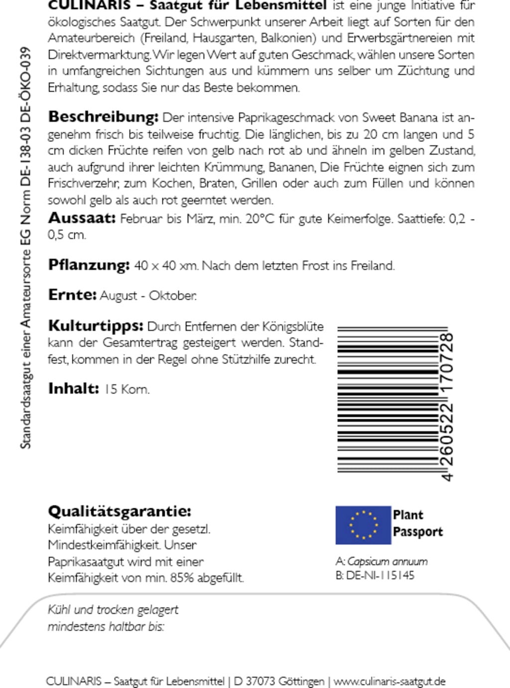 | Manufacturer: | Culinaris - Saatgut für Lebensmittel, Thiegasse 5, 37124, Rosdorf, Germany, info@culinaris-saatgut.de, culinaris-saatgut.de |
