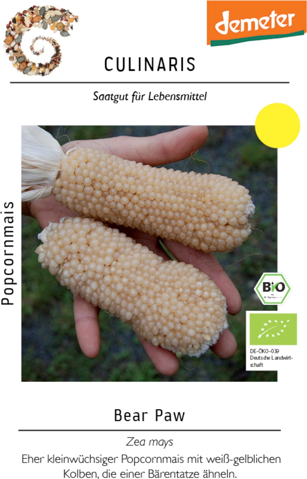Culinaris Organic Popcorn Corn Bear Paw