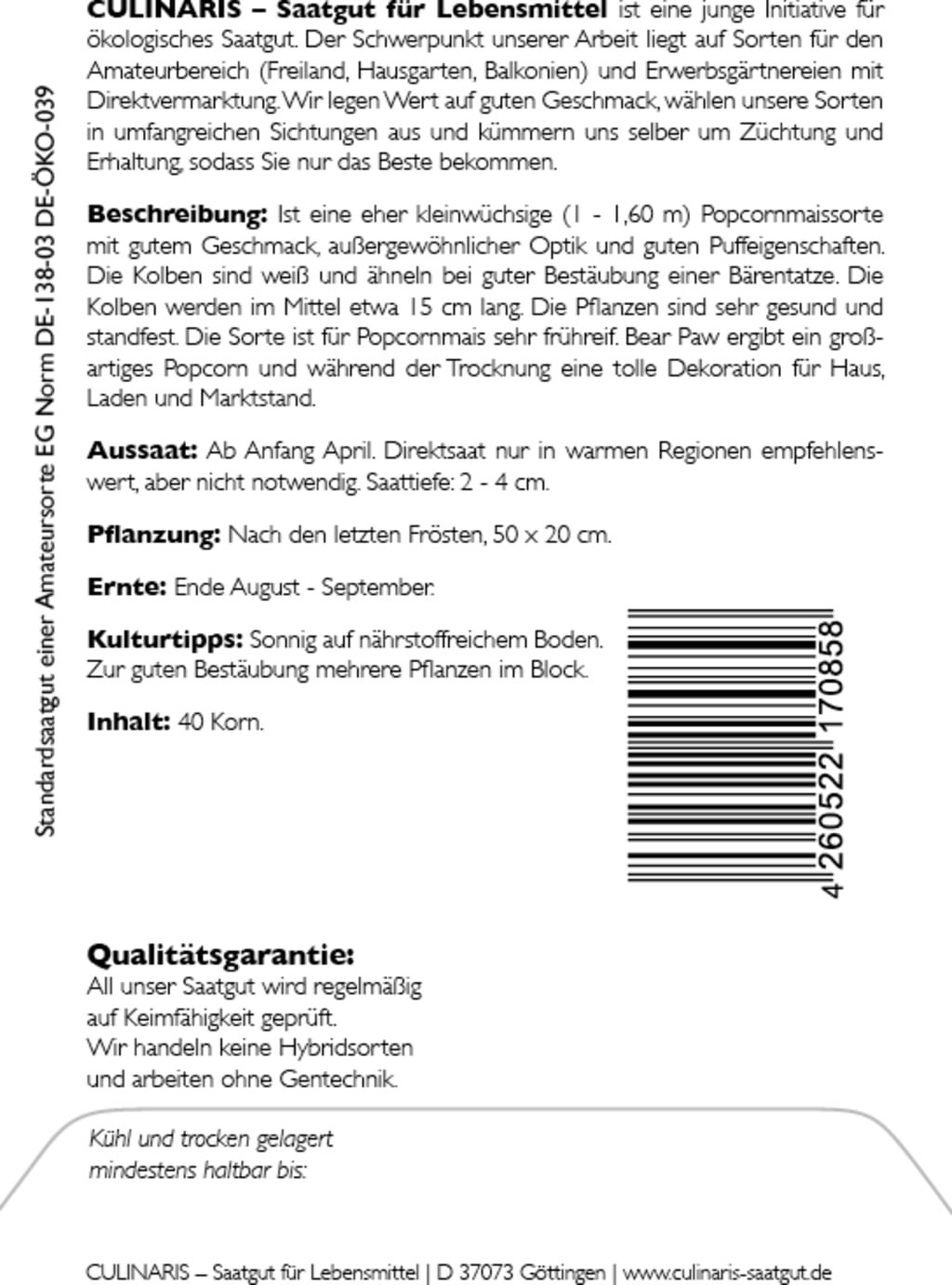 | Manufacturer: | Culinaris - Saatgut für Lebensmittel, Thiegasse 5, 37124, Rosdorf, Germany, info@culinaris-saatgut.de, culinaris-saatgut.de |