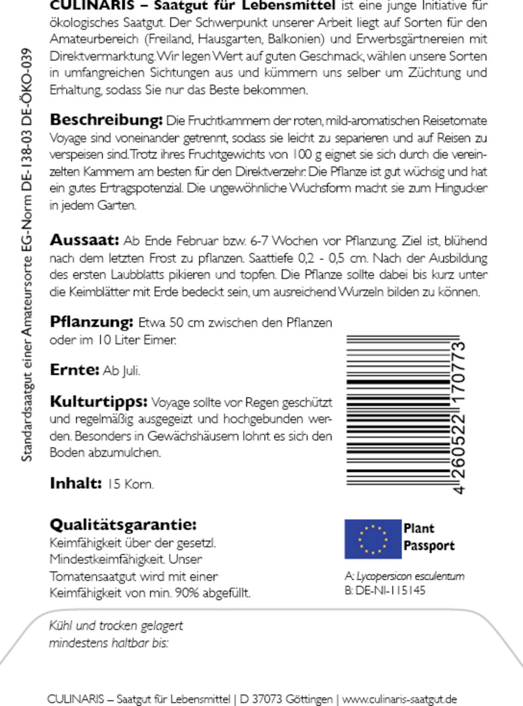 | Manufacturer: | Culinaris - Saatgut für Lebensmittel, Thiegasse 5, 37124, Rosdorf, Germany, info@culinaris-saatgut.de, culinaris-saatgut.de |