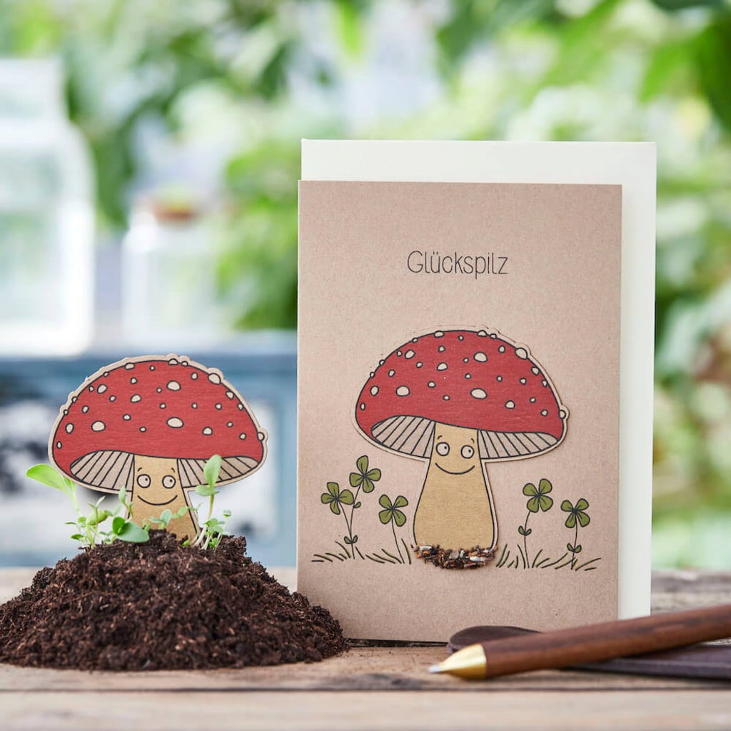 Die Stadtgärtner Greeting Card with Seed Plug "Glückspilz"