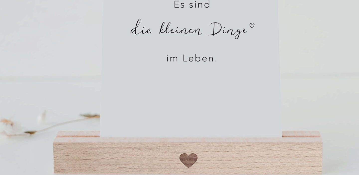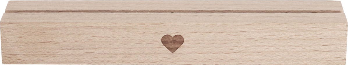 These simple and elegant postcard stands made of high-quality beech wood offer space to display your favourite photos, postcards and more. The heart engraved on the front is not only a charming detail, but also makes the practical set of 2 a unique gift. Simply swap out the photos for a new look.
