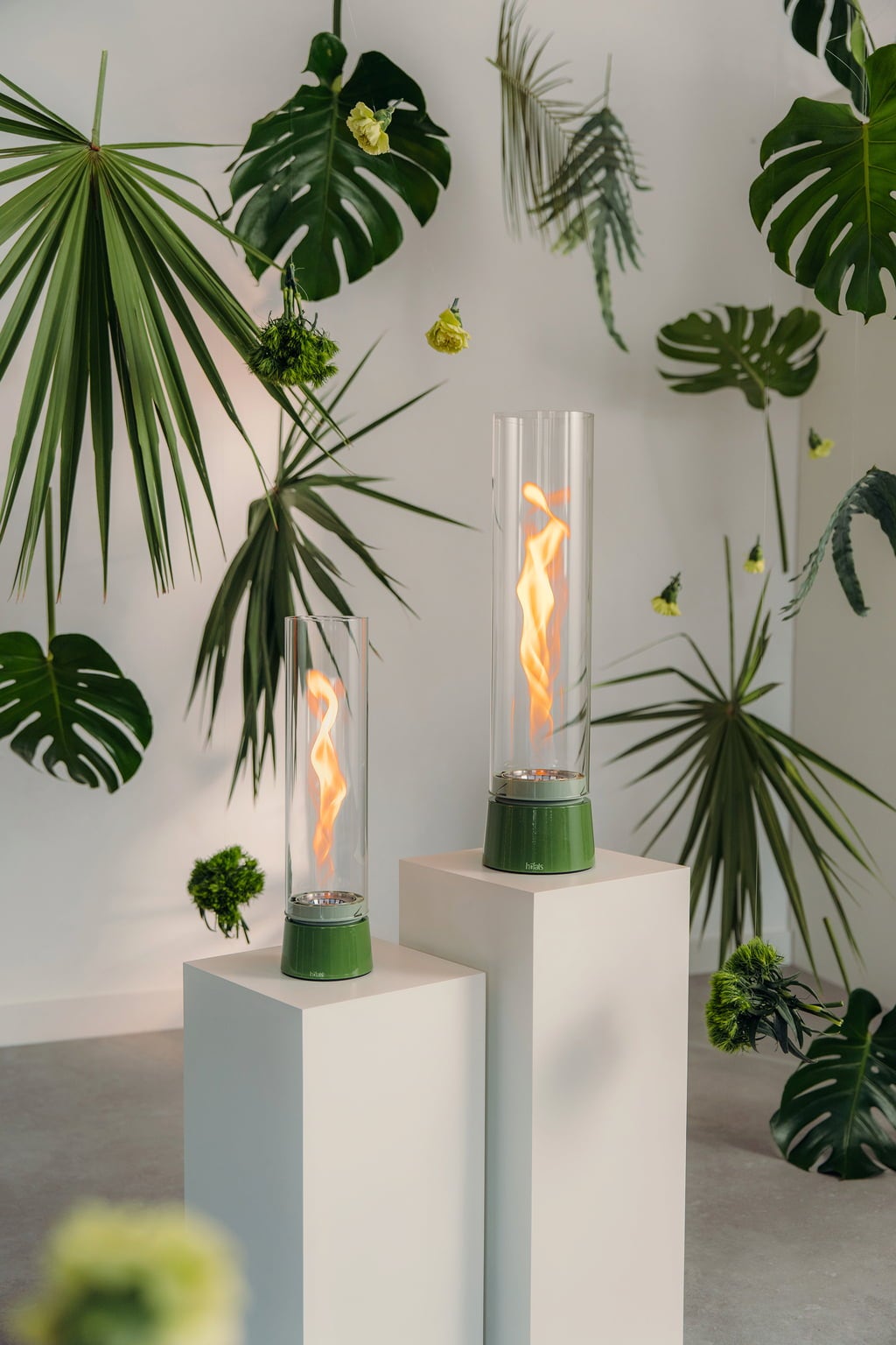 Included in the delivery: Base, flame body with safety container, bio-burner with eco ring and extinguishing lid, glass cylinder