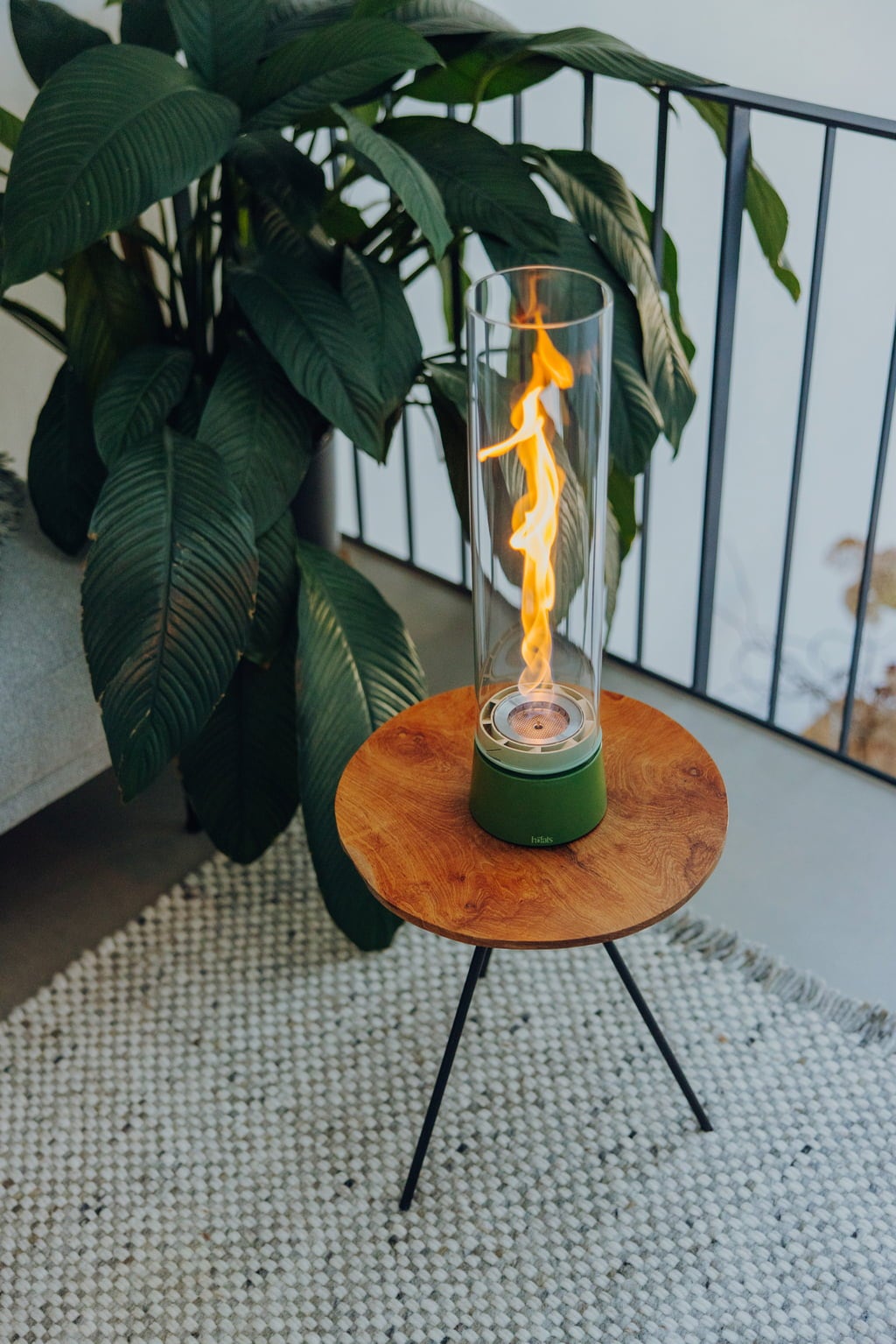 Enjoy the fascinating pleasure of a fire right on your table with the multiple-award-winning SPIN air Table Fire. The new, sleek silhouette adds a stylish touch to yout table and is suitable for both indoor and outdoor use. The patented Bio-Burner creates an impressive flame vortex that is visible even in daylight and radiates up to 2000 W of cosy warmth.