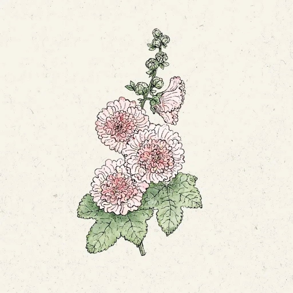 Jora Dahl Alcea rosea "Queeny Salmon" (Hollyhock)