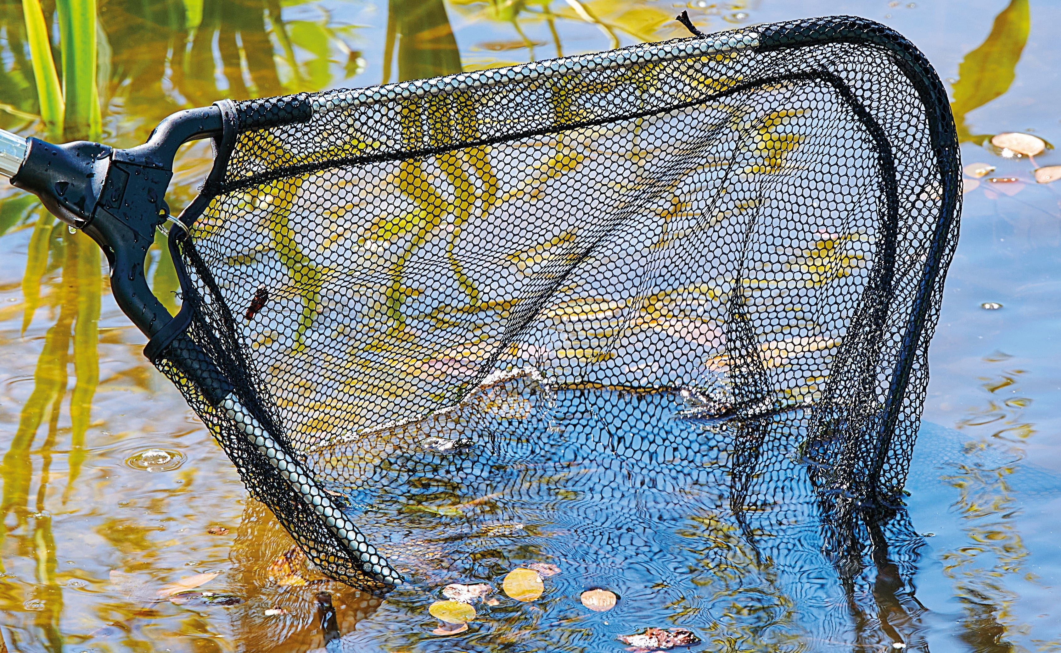 With a water-permeable mesh size of 5 mm, even small objects can be fished off effortlessly and quickly. The minimum handle length is 90 cm, the maximum handle length is 190 cm, with the maximum total length reaching 187 cm. The triangular shape allows manoeuvrable action - ideal for small ornamental ponds!