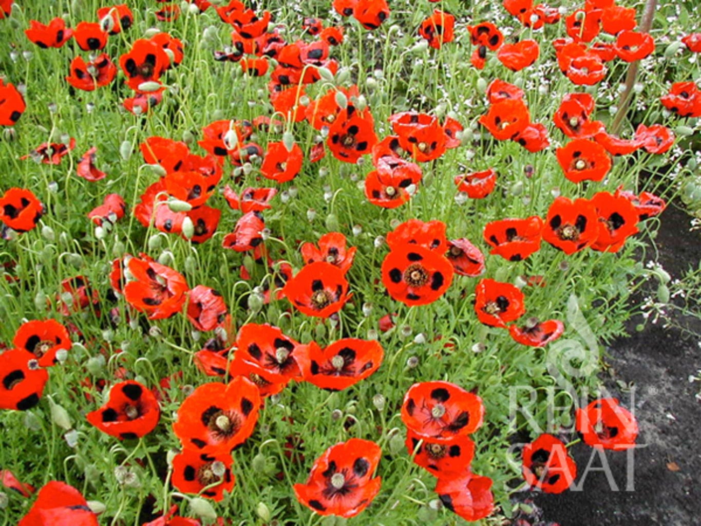This variety grows to approx. 50 cm in height and produces large, single, bright red flowers. Each petal features a large black spot.