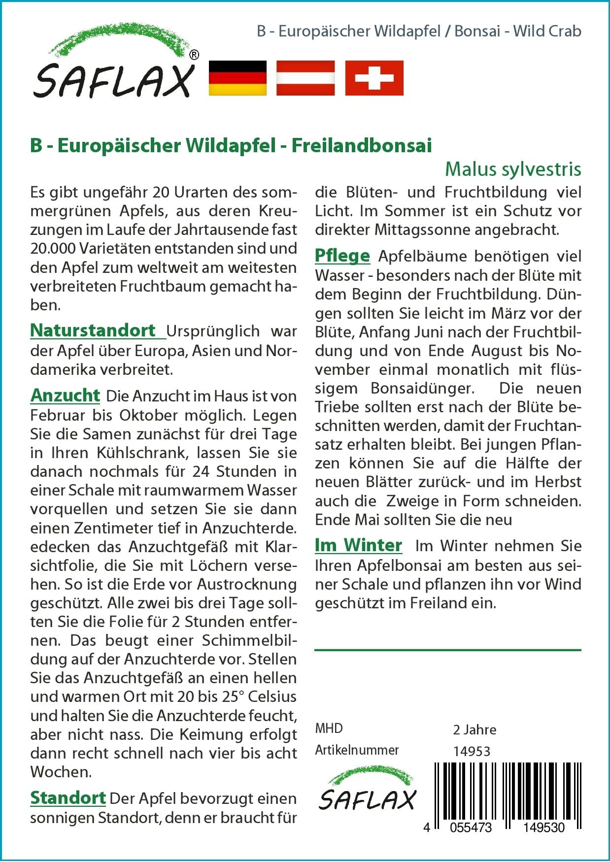 English reviews written for Saflax Bonsai - European Crab Apple
