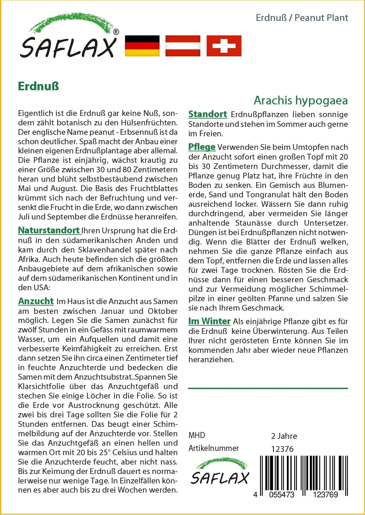 The peanut is originally native to the Andes in South America, but also grows well in Europe. The herbaceous plant can grow up to 80 centimetres tall and is self-pollinating. Peanuts ripen from July to September. After harvesting, roast the peanuts in a pan to make them last longer.