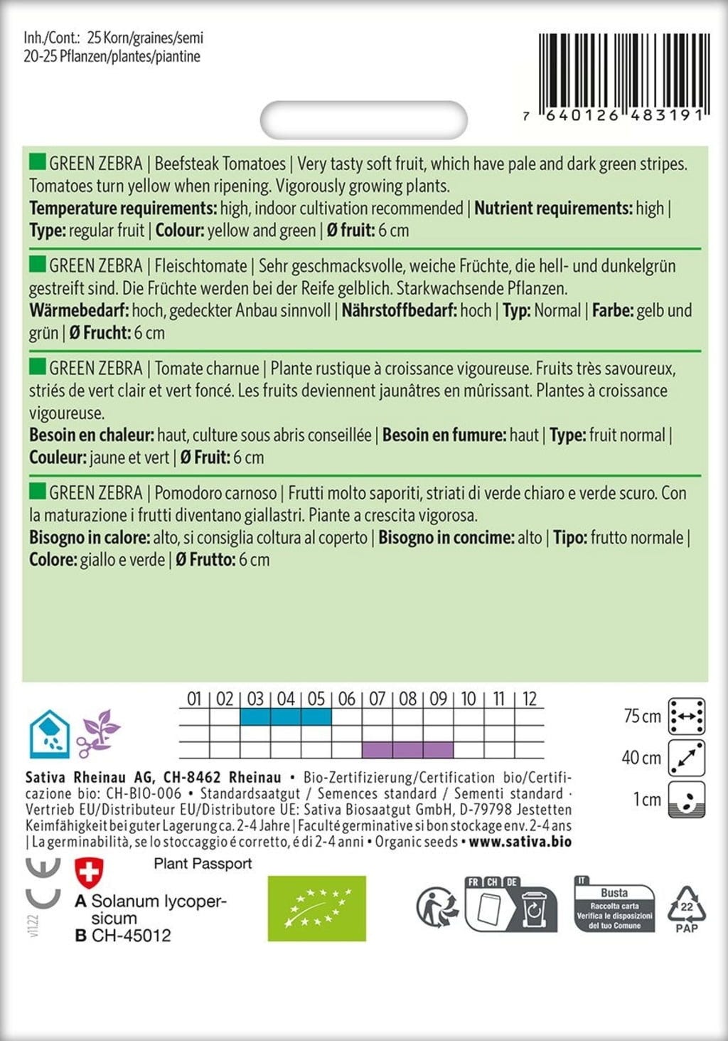 Sativa Organic Beefsteak Tomato "Green Zebra"