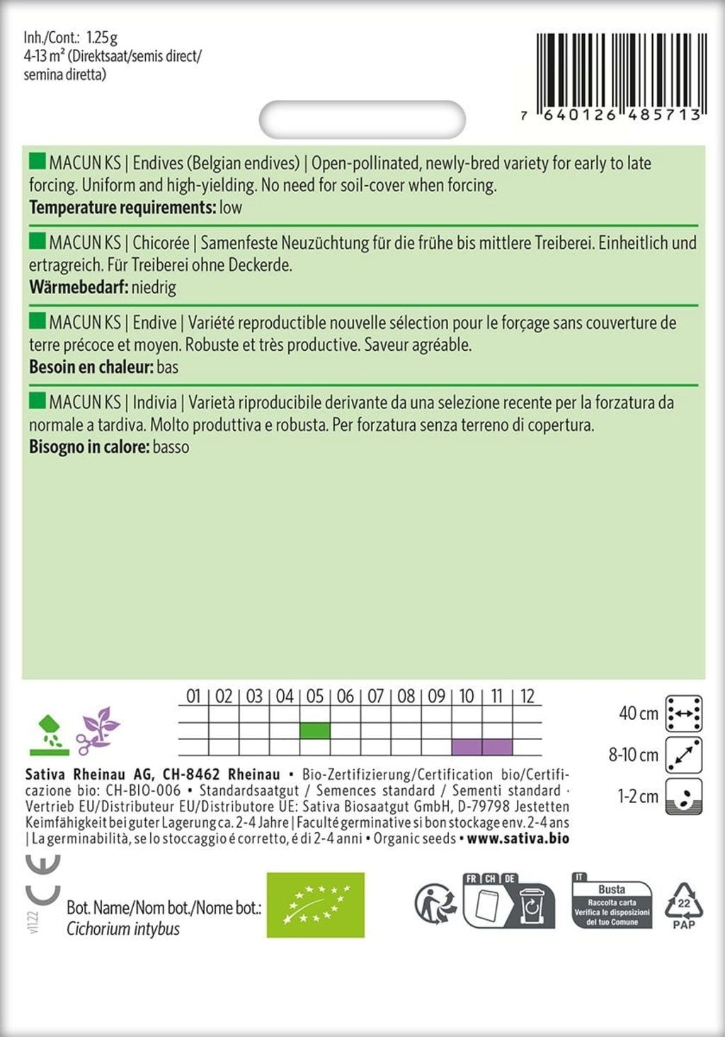 Macun Ks is a newly bred chicory variety for early to medium forcing, where no casing soil is required. The white-yellow heads are uniform in size. A high-yielding harvest can be expected.