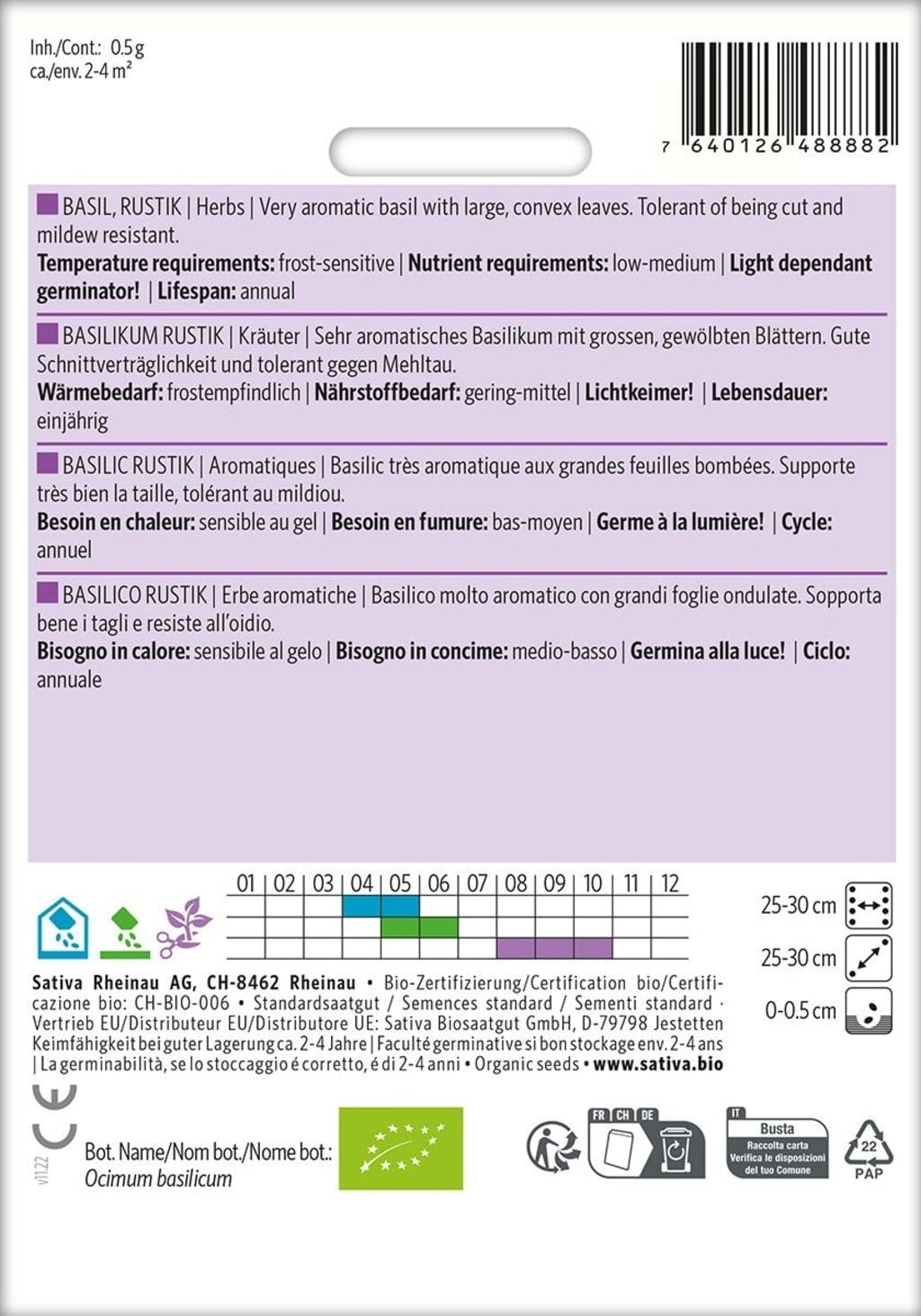 English reviews written for Sativa Organic Herb "Basil Rustik"