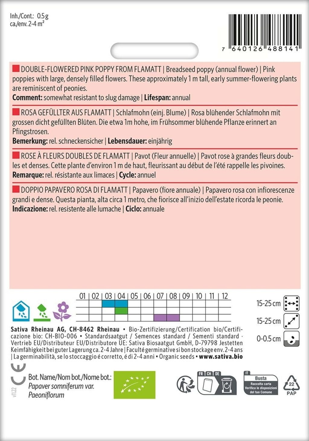 Sativa Organic Opium Poppy "Double Pink from Flamatt"