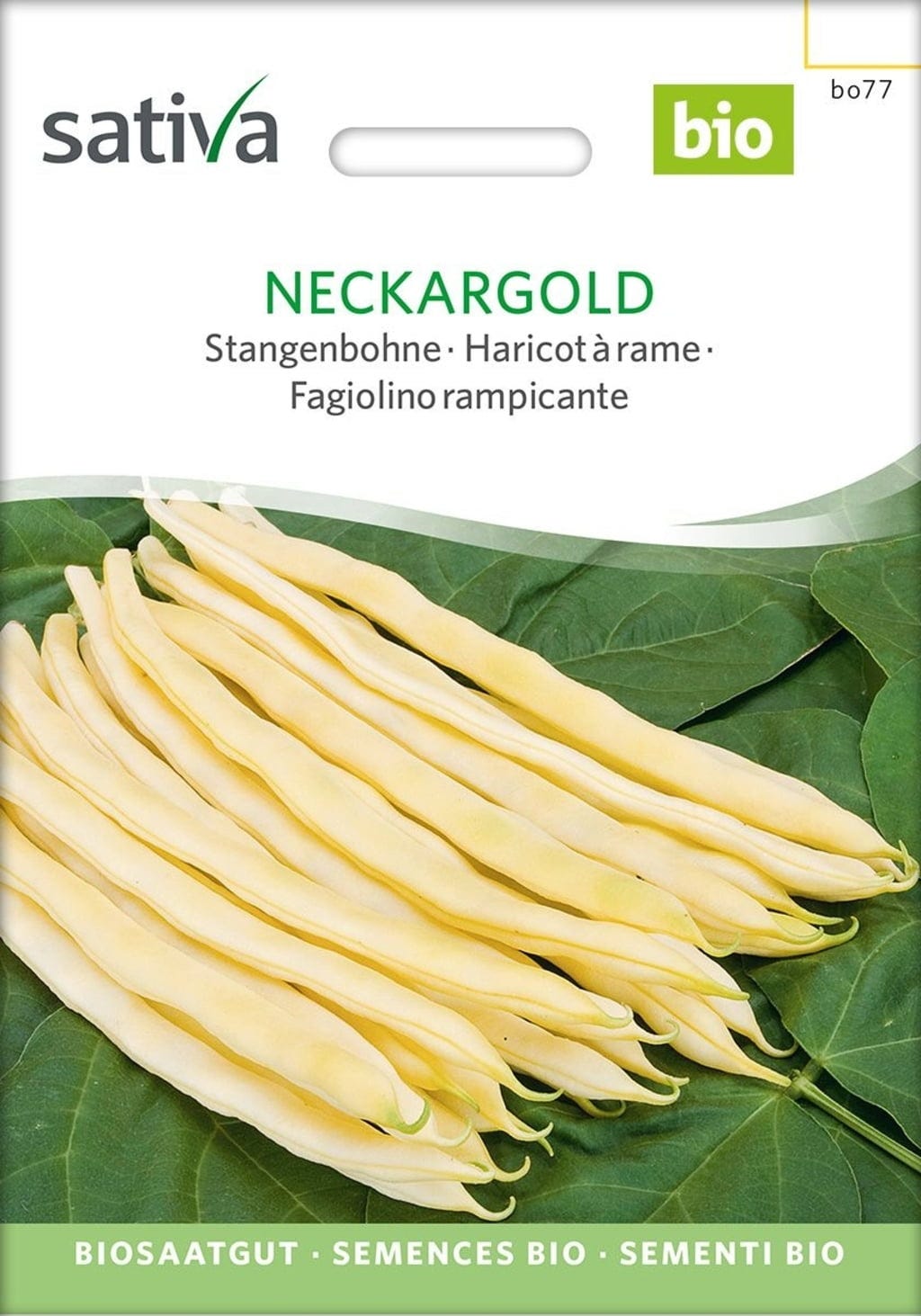 The proven Neckargold variety bears long, yellow pods that have an excellent taste. The beans are tender, fleshy, and stringless. Harvesting can continue until October.