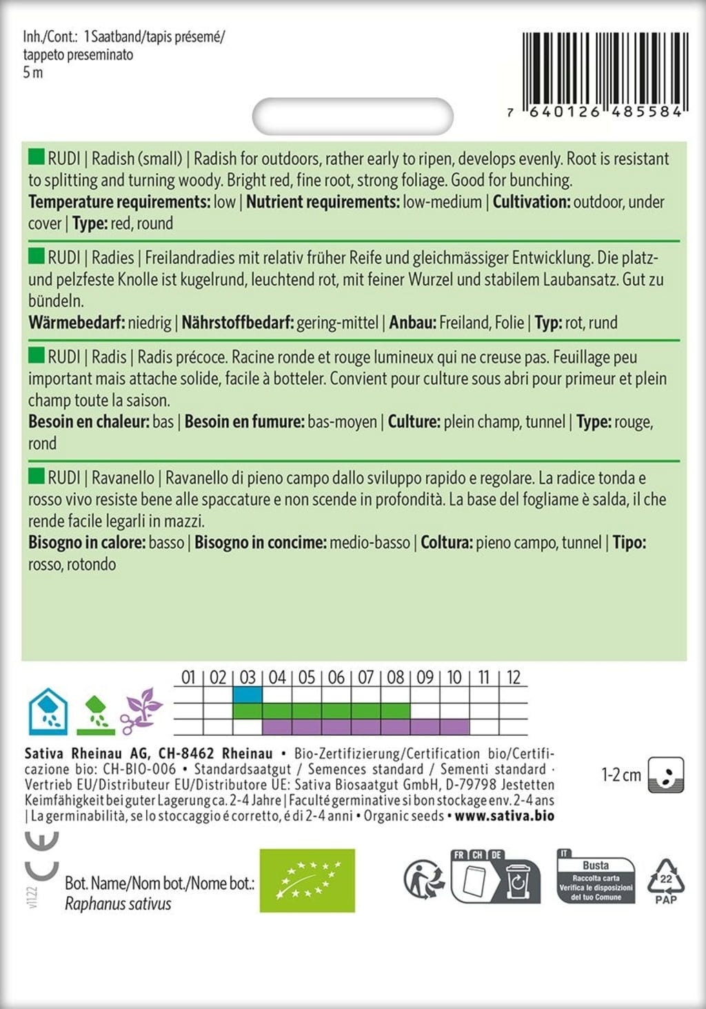 English reviews written for Sativa Organic Radish, Rudi Seed Tape