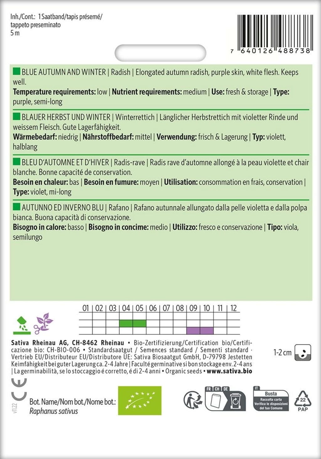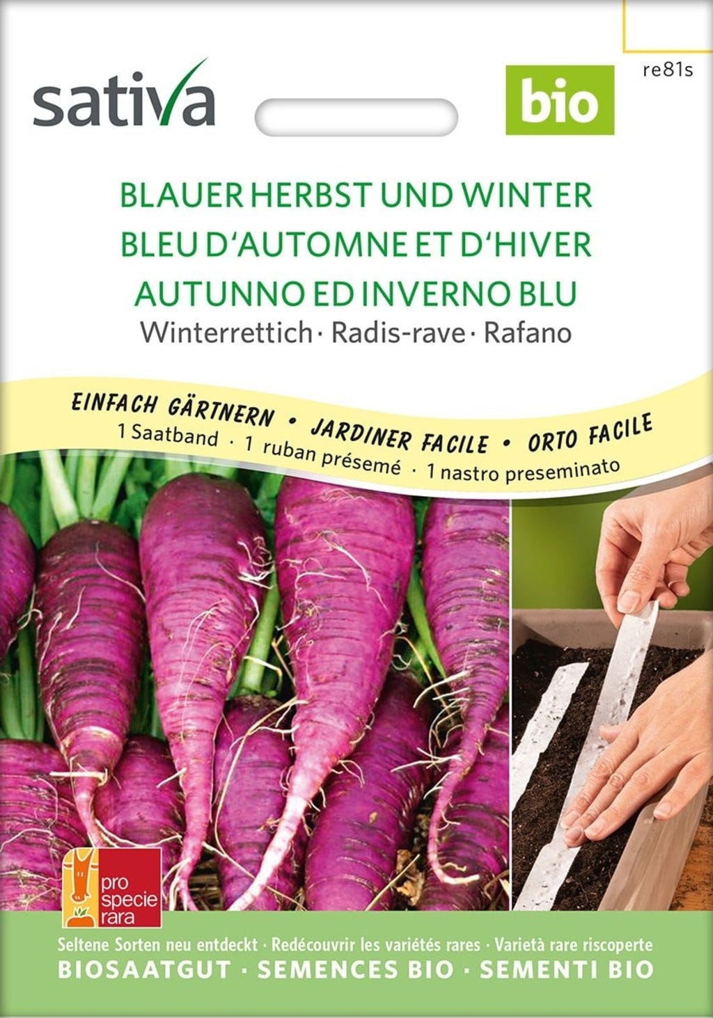 Sativa Organic Winter Radish, Blue Autumn Winter Seed Tape