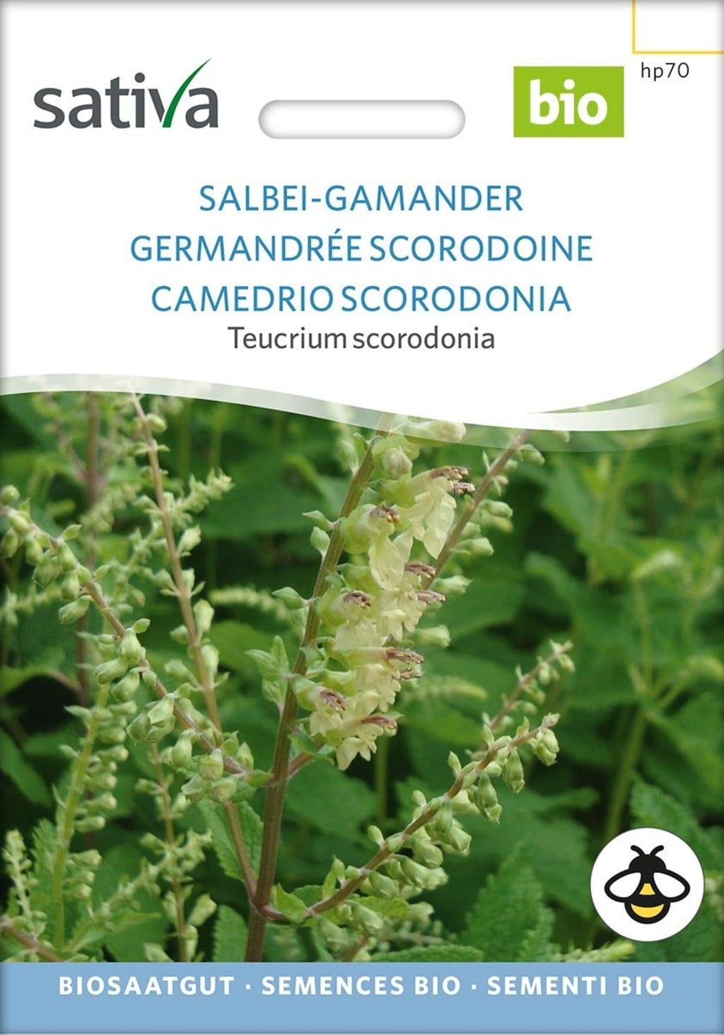 Wood sage belongs to the mint family and is a perennial. The location should be moist and semi-shaded. The herb naturalises easily near woody plants, but also grows well in pots and is frequently visited by insects.