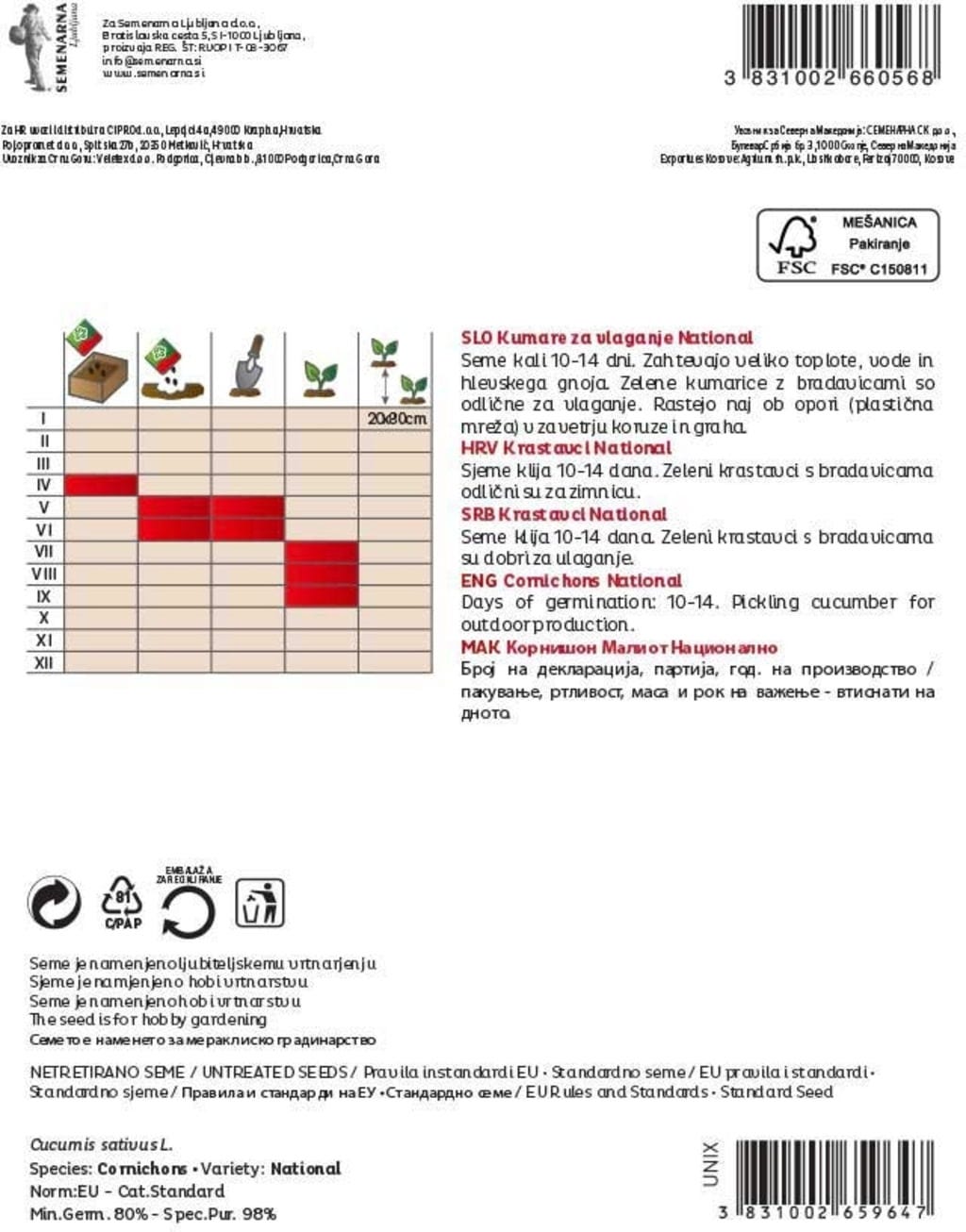 Semenarna Ljubljana Pickling Cucumber Seeds ‘National’, 3 grams
