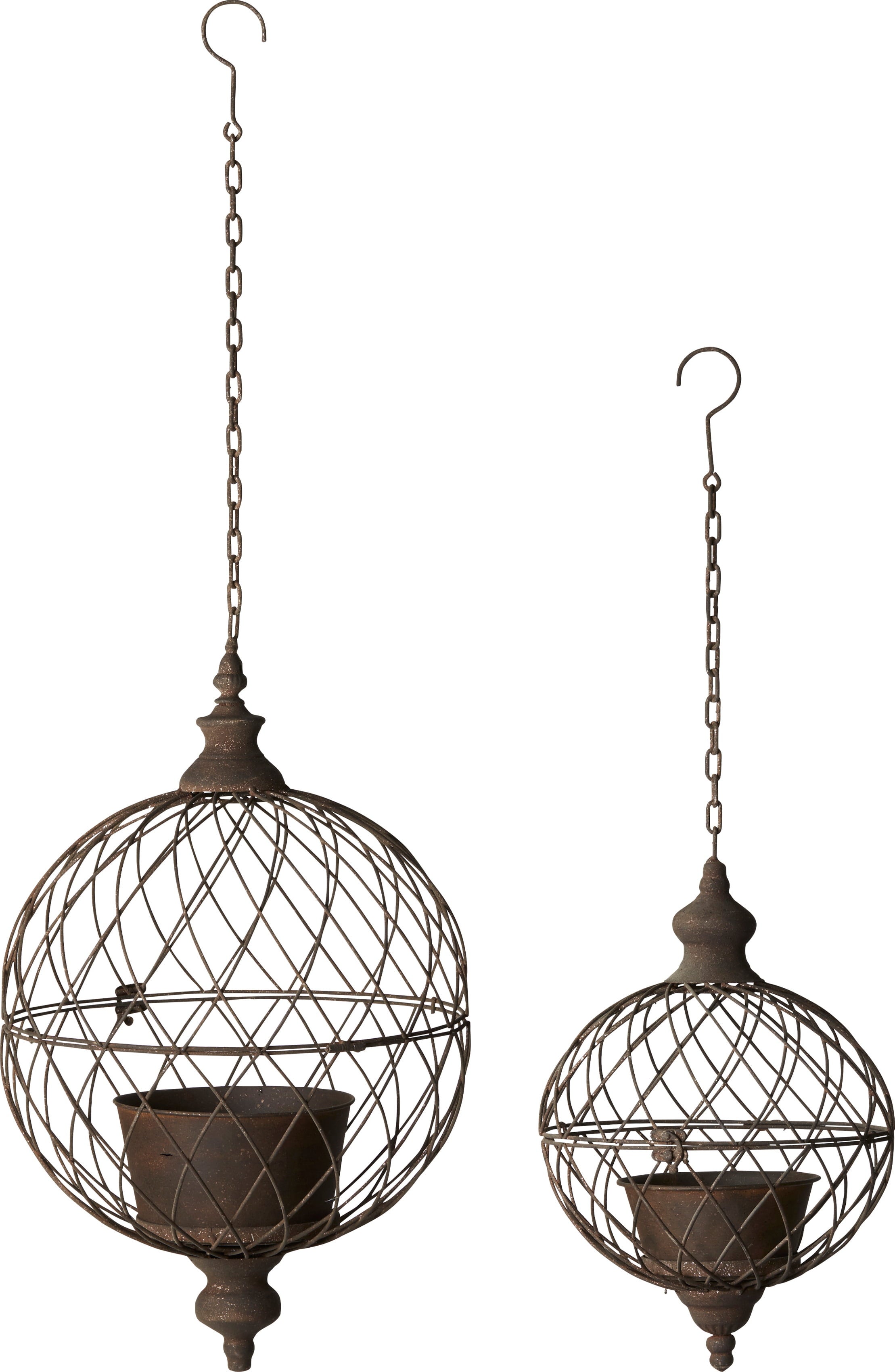 These hanging candle holders feature a charming vintage design. The perfect way to bring the romance of candlelight to your home.