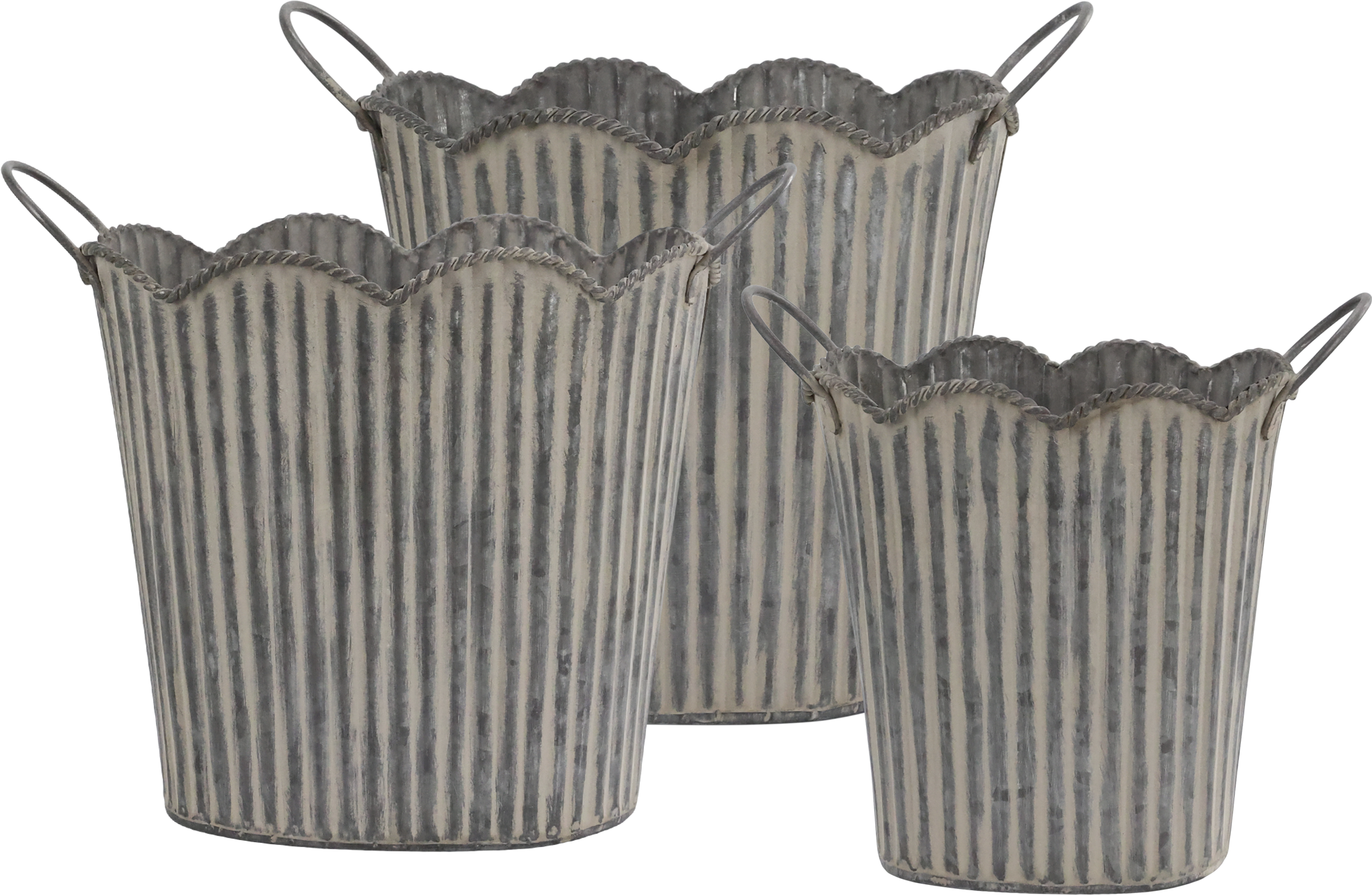 Chic Antique Cache-Pot à Rainures avec Poignées - Lot de 3 - Zinc Antique