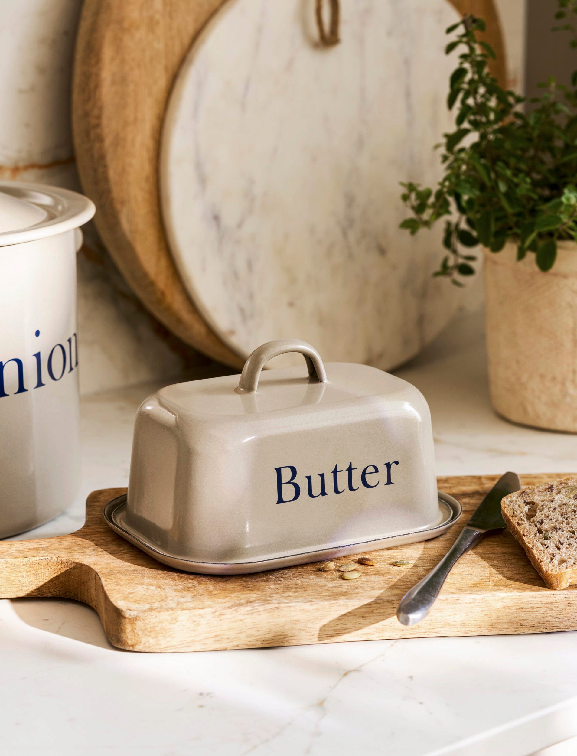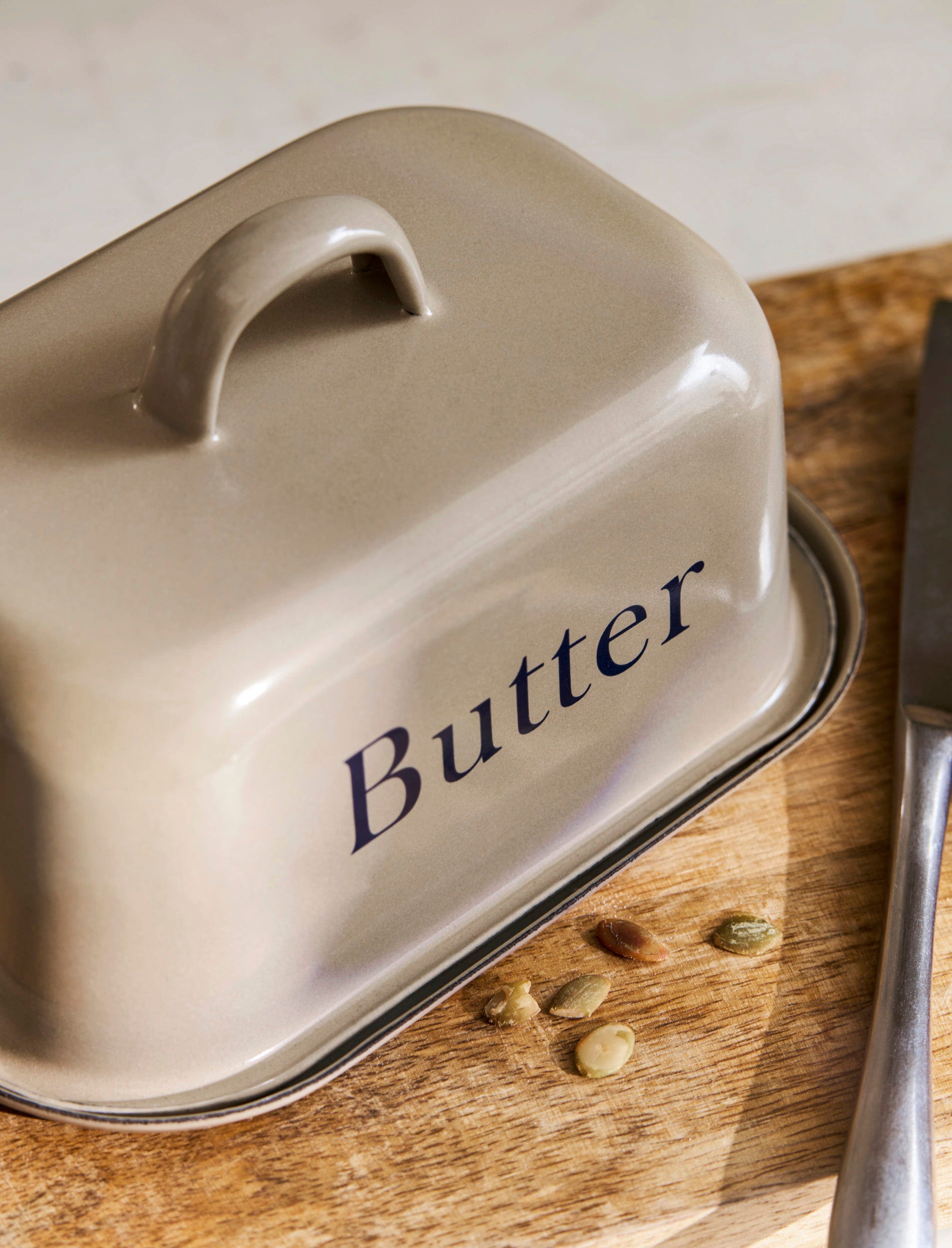 Fabriqué en émail durable dans une teinte chaleureuse Truffle, ce beurrier est idéal pour conserver le beurre au réfrigérateur, dans le garde-manger ou directement sur le plan de travail, tout en permettant une présentation soignée.
