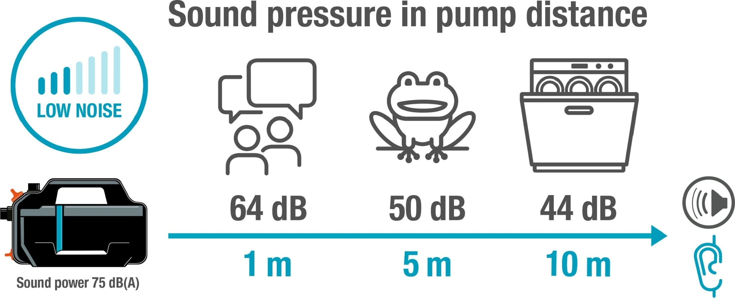 - Technologie Silent : niveau sonore extrêmement bas, avec seulement 44 dB à 10 m de distance.