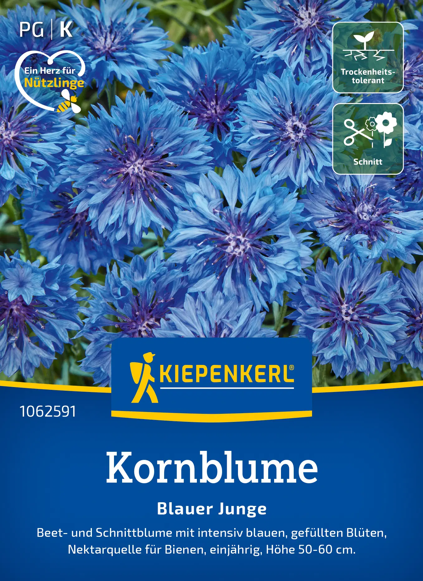 Le Bleuet "Blauer Junge" séduit par ses grandes fleurs d'un bleu éclatant, parfaites pour les massifs ou les bouquets. Ses fleurs riches en nectar attirent les abeilles et autres pollinisateurs, apportant une touche de couleur vive au jardin. Que ce soit dans une prairie fleurie ou comme point focal coloré dans un massif, cette plante annuelle crée une ambiance champêtre charmante et ajoute une touche naturelle.