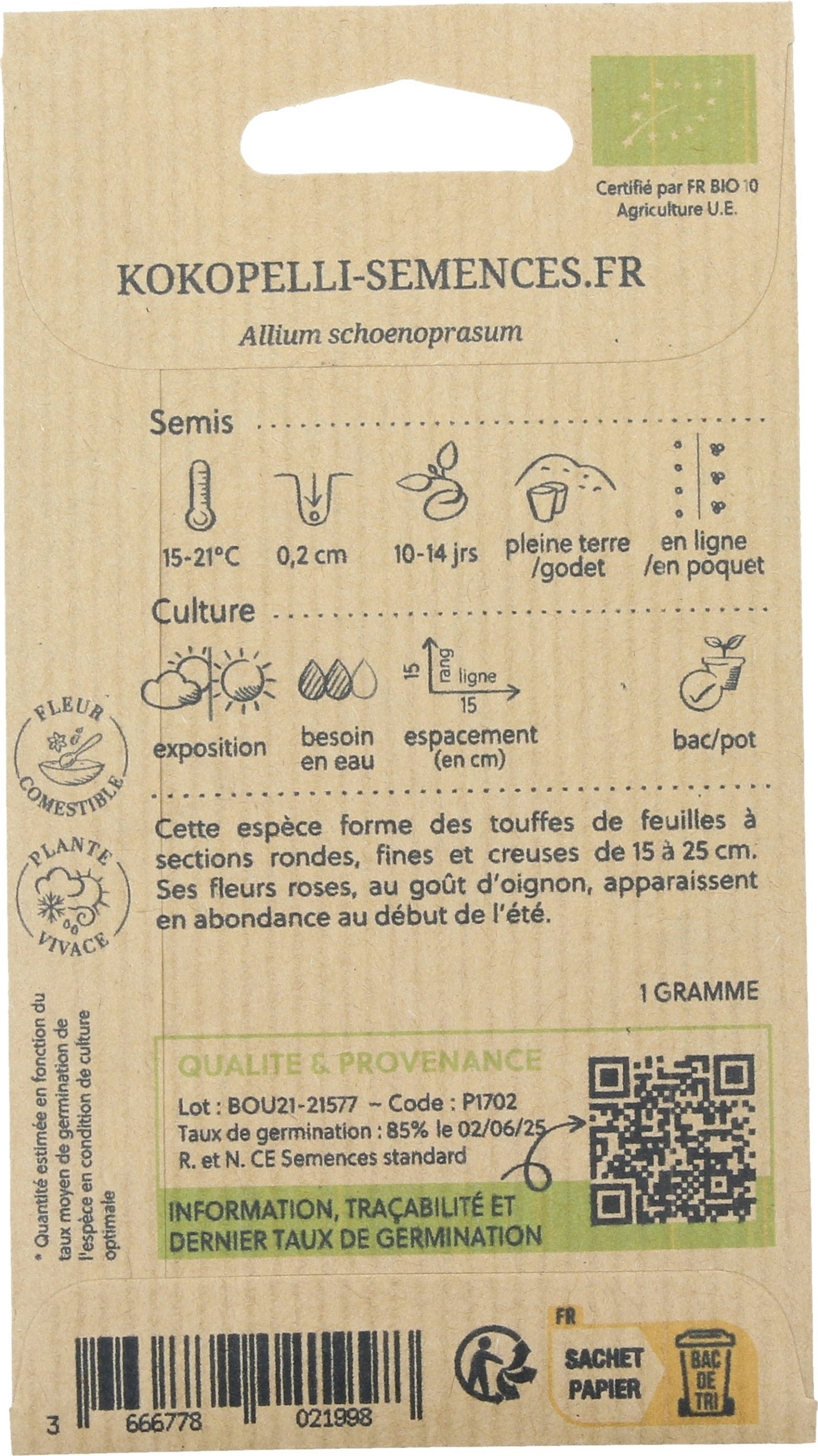 avis en français à propos du produit Kokopelli Ciboulette Commune Bio