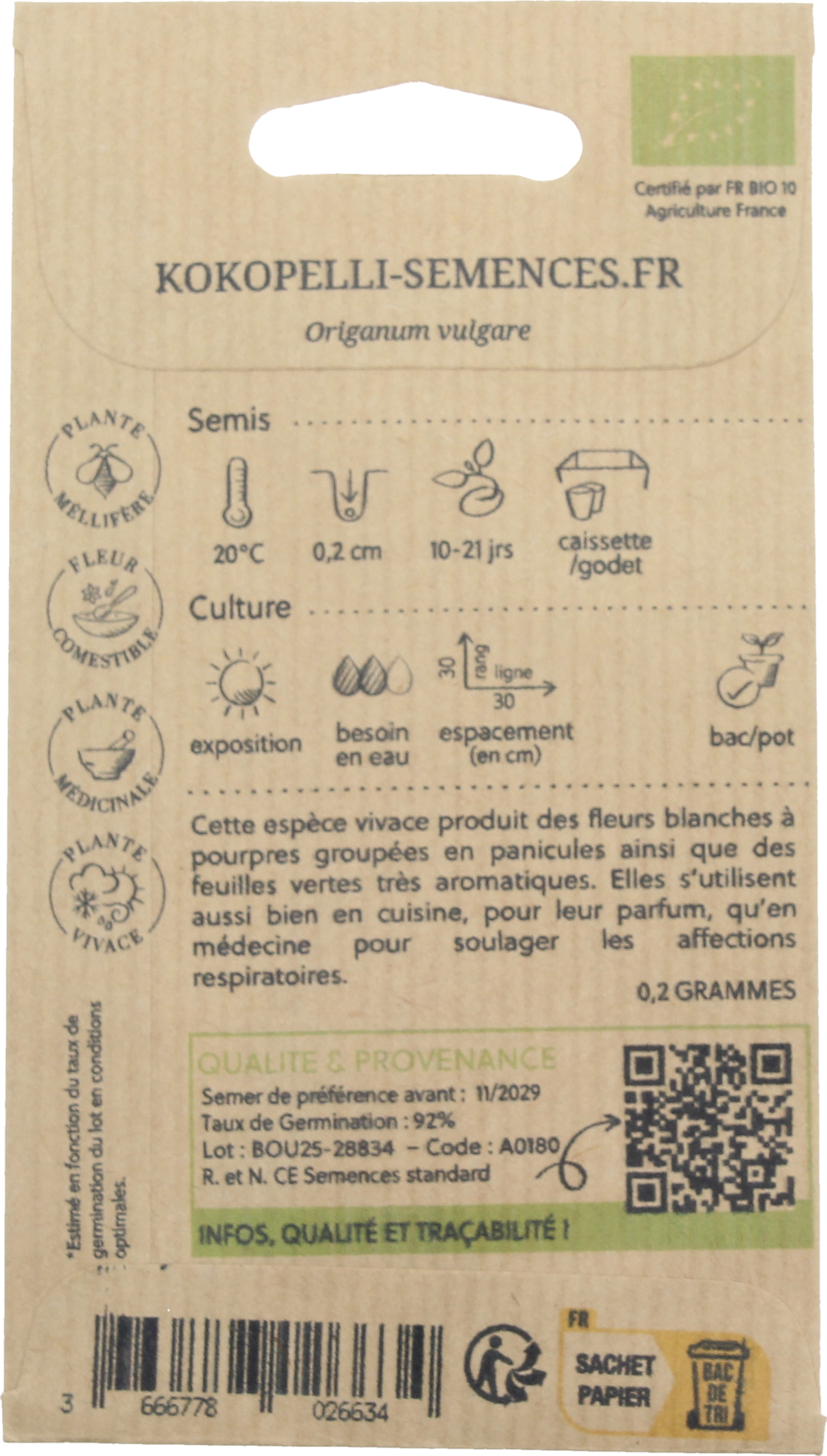 avis en français à propos du produit Kokopelli Origan Bio